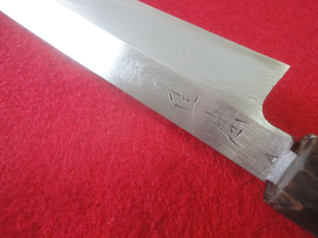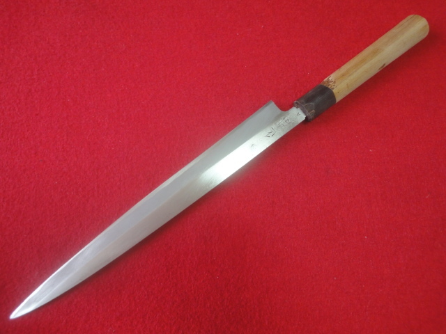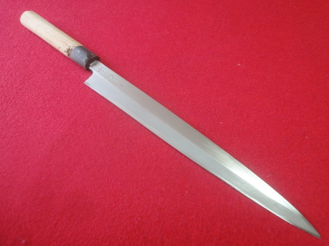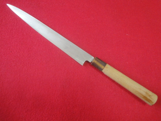 【正本】※青鋼 刺身包丁 刃渡22.5㎝ 全長36.8㎝ 峰厚3.8mm ※片刃 中古品 全国一律送料1200円
