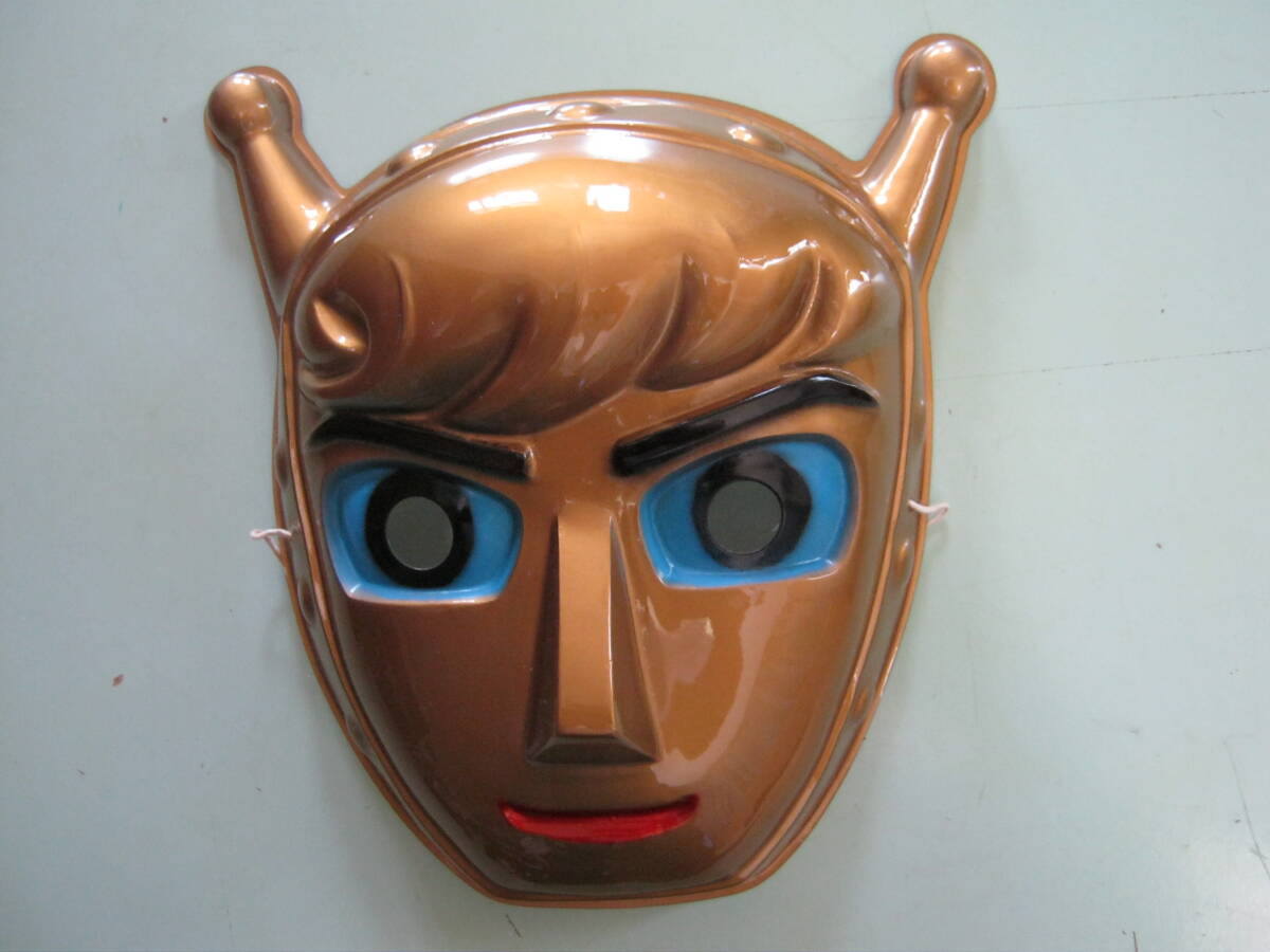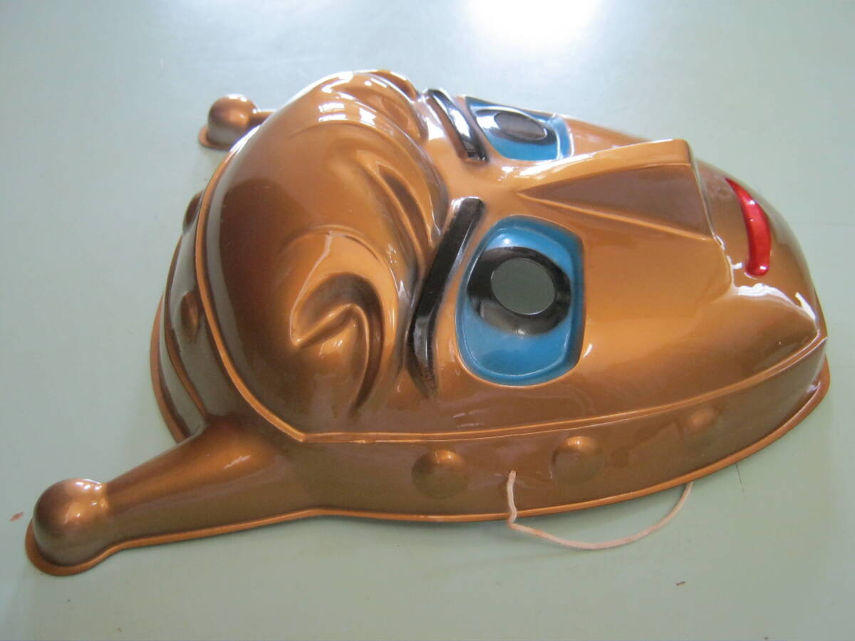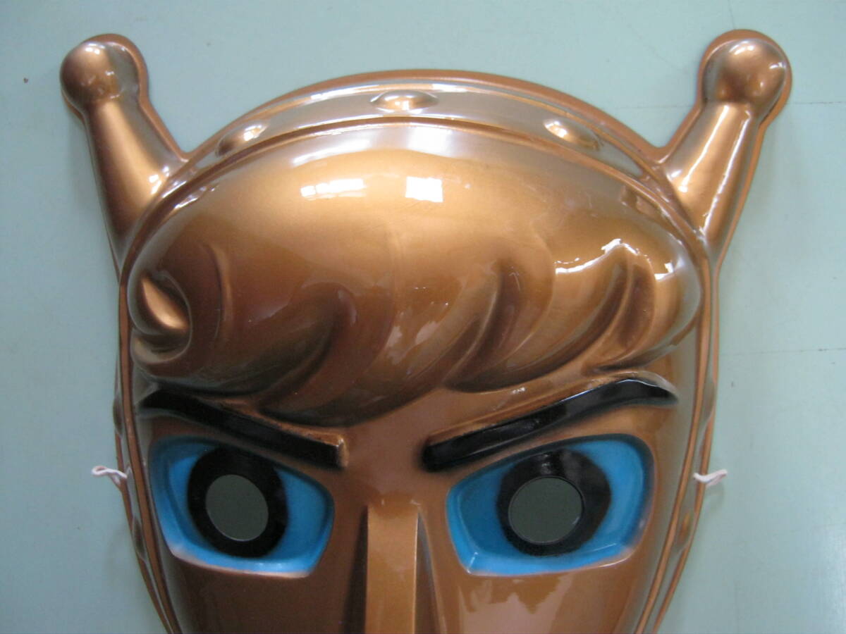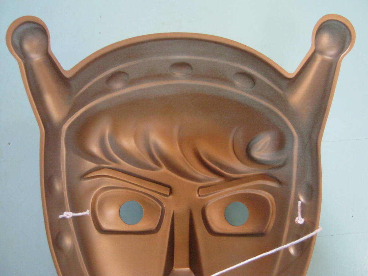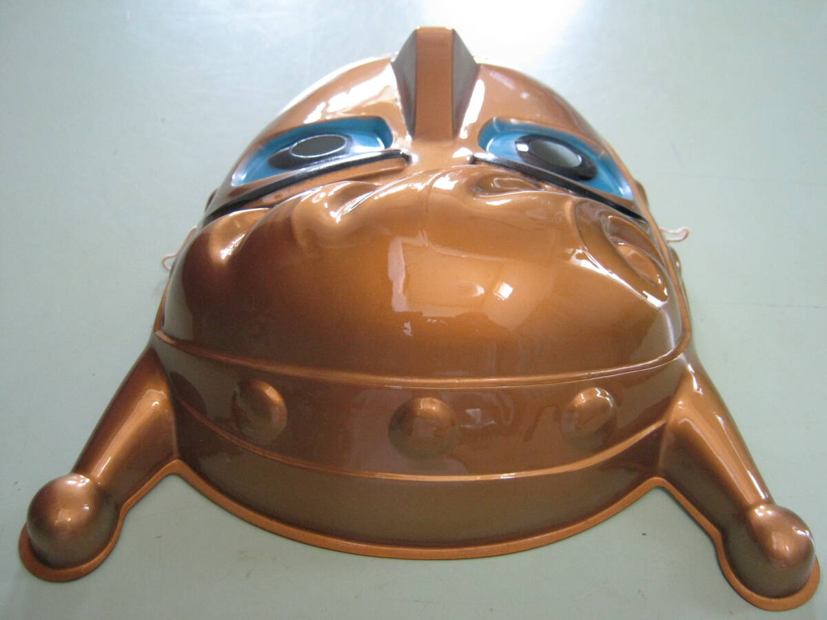 当時物です。メーカー不明です。本体のみです。未使用品です。汚れ、キズがあります。破損はありません。お面の後に付いているゴム紐が経年劣化で伸びています。サイズは約19.5㎝×18.5㎝×4.5㎝位です。記載されているサイズは素人採寸の為 参考サイズです。以上判るだけ記載しましたが写真、質問等で判断お願い致します。落札後はノークレーム、ノーリターンでお願い致します。発送はゆうパック(元払い)のみです。配達日、配達時間帯の指定ができます。
