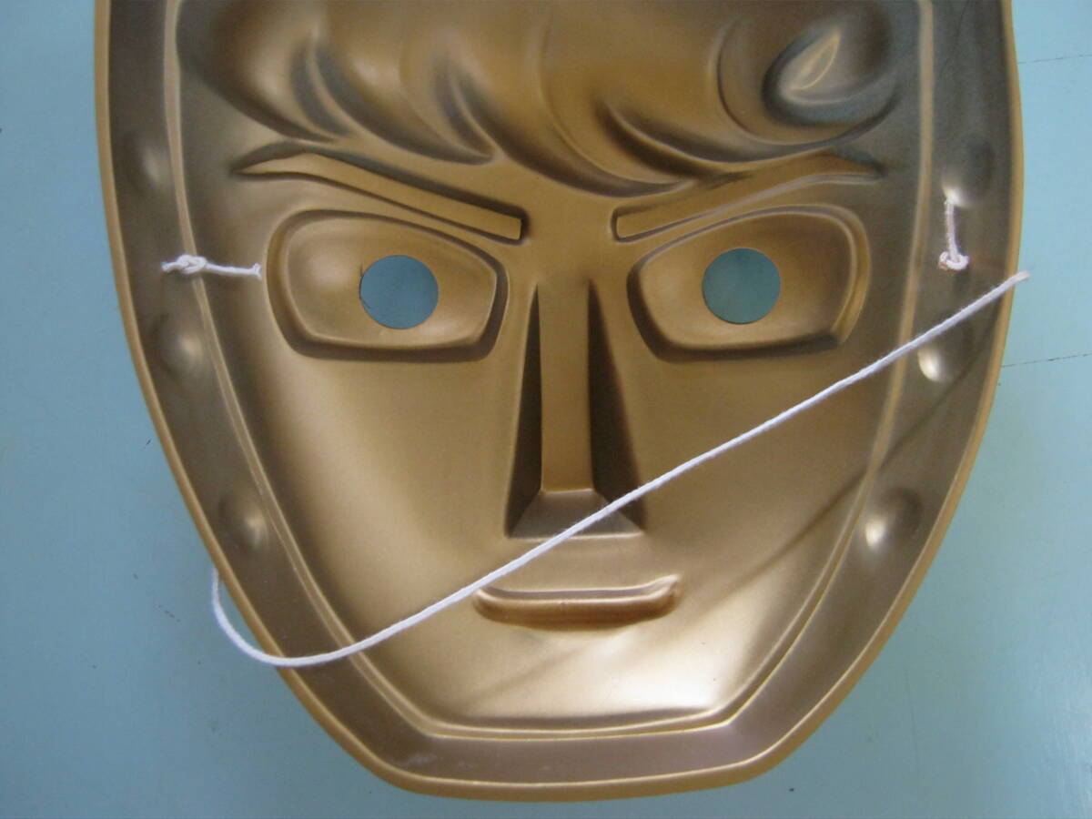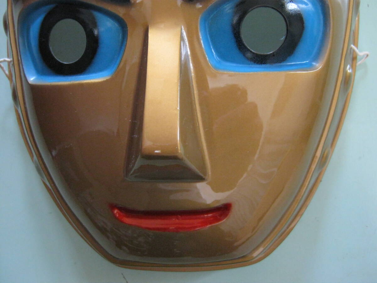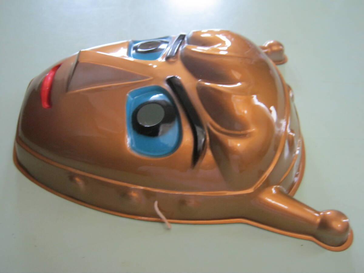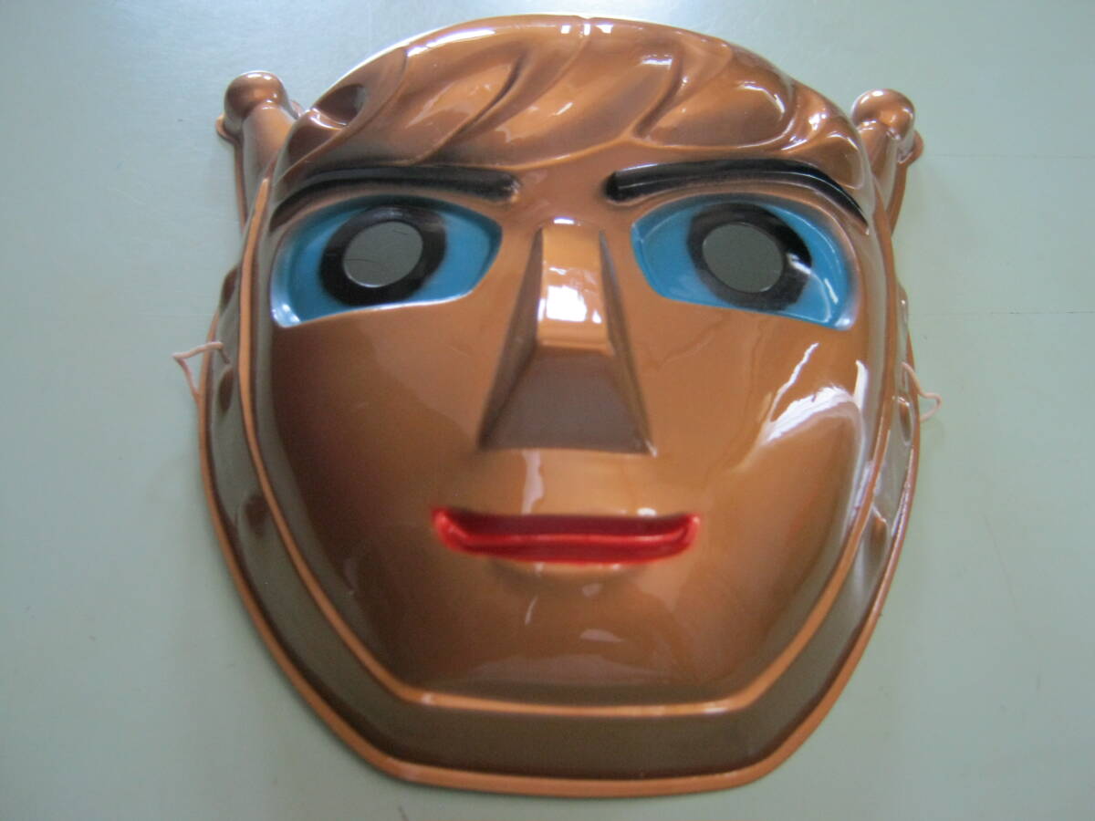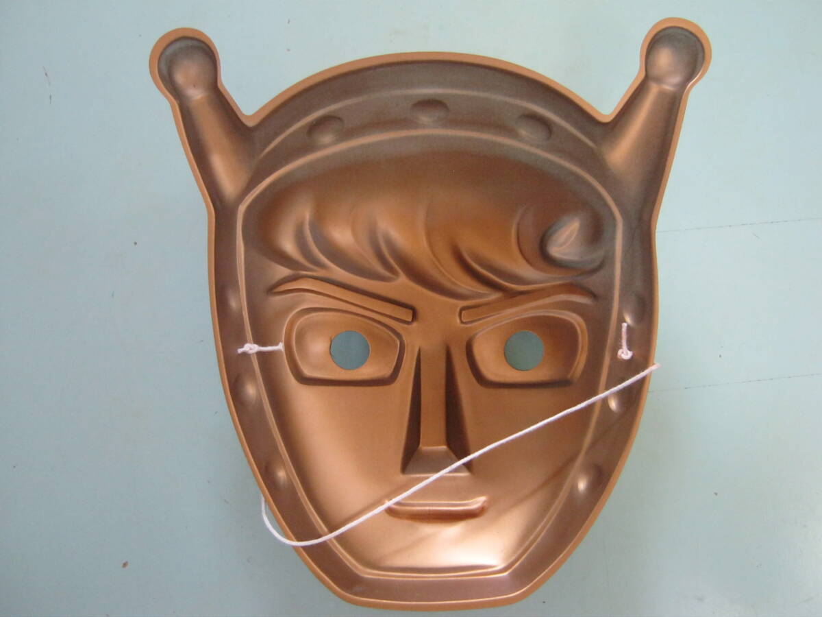 当時物です。メーカー不明です。本体のみです。未使用品です。汚れ、キズがあります。破損はありません。お面の後に付いているゴム紐が経年劣化で伸びています。サイズは約19.5㎝×18.5㎝×4.5㎝位です。記載されているサイズは素人採寸の為 参考サイズです。以上判るだけ記載しましたが写真、質問等で判断お願い致します。落札後はノークレーム、ノーリターンでお願い致します。発送はゆうパック(元払い)のみです。配達日、配達時間帯の指定ができます。