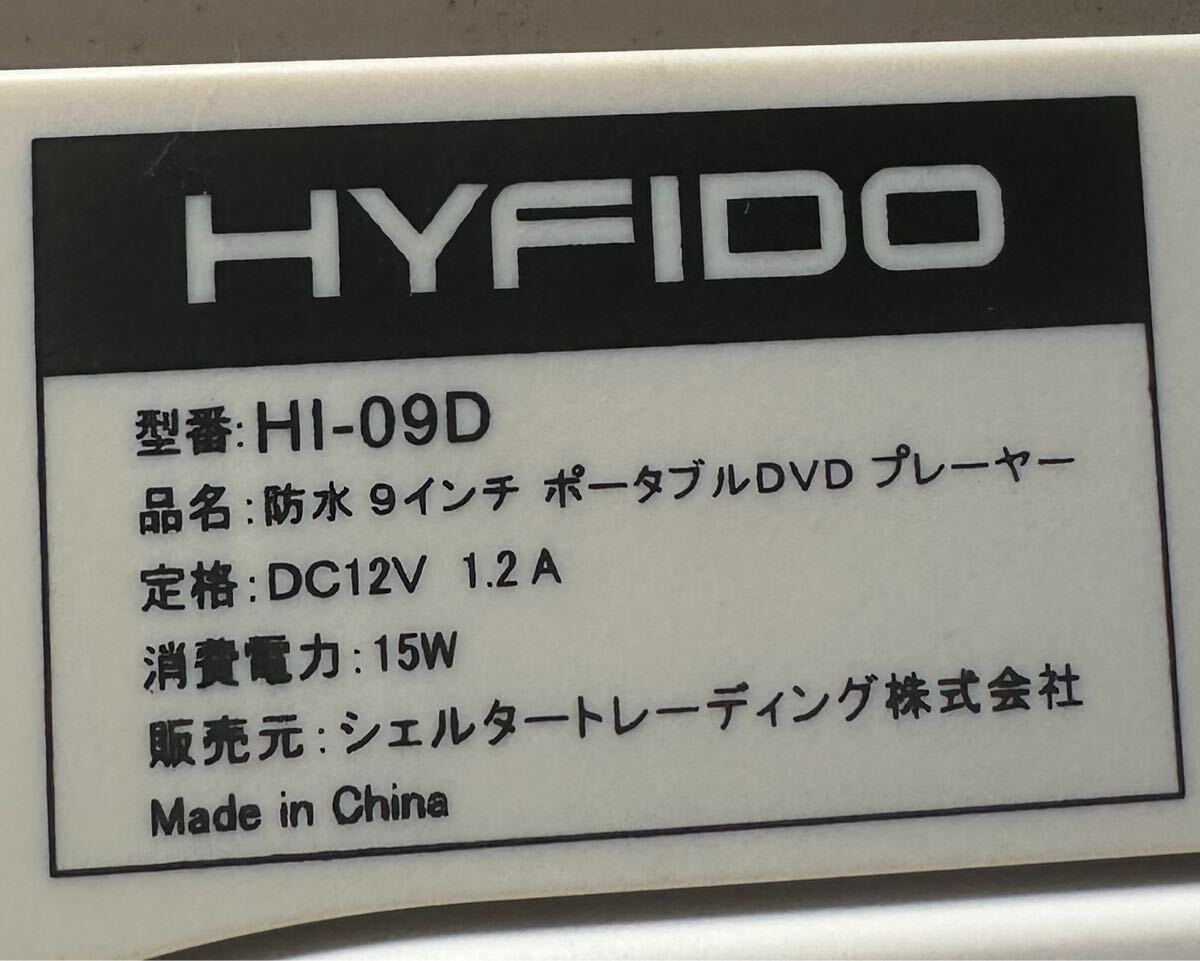 ・【HYFIDO 9インチ 防水 ポータブルDVDプレイヤー HI-09D 本体 アダプタ】