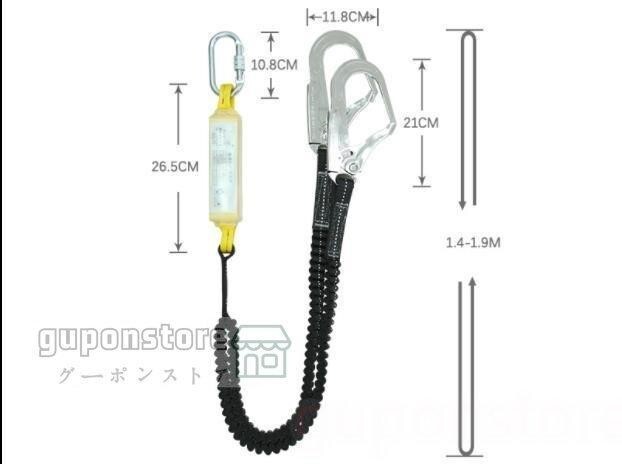 品質保証★フルハーネス型用 2丁掛けタイプ ランヤード ダブルランヤード 伸縮 蛇腹式ロープ フック 1.4-1.9m 安全帯用 一般作業用