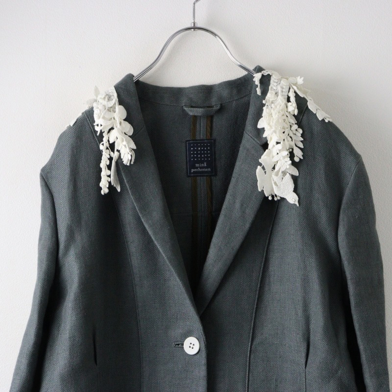 希少 定価10万 ミナペルホネン mina perhonen zs6673 ombra リネン コート 38/グレー系 羽織り アウター forest parade【2400014443868】
