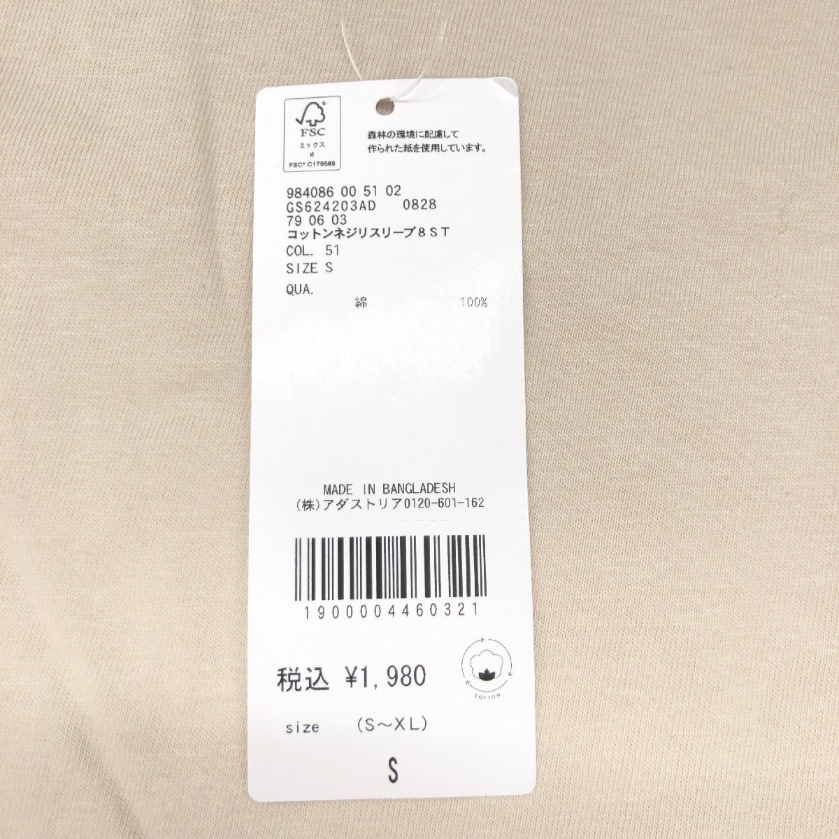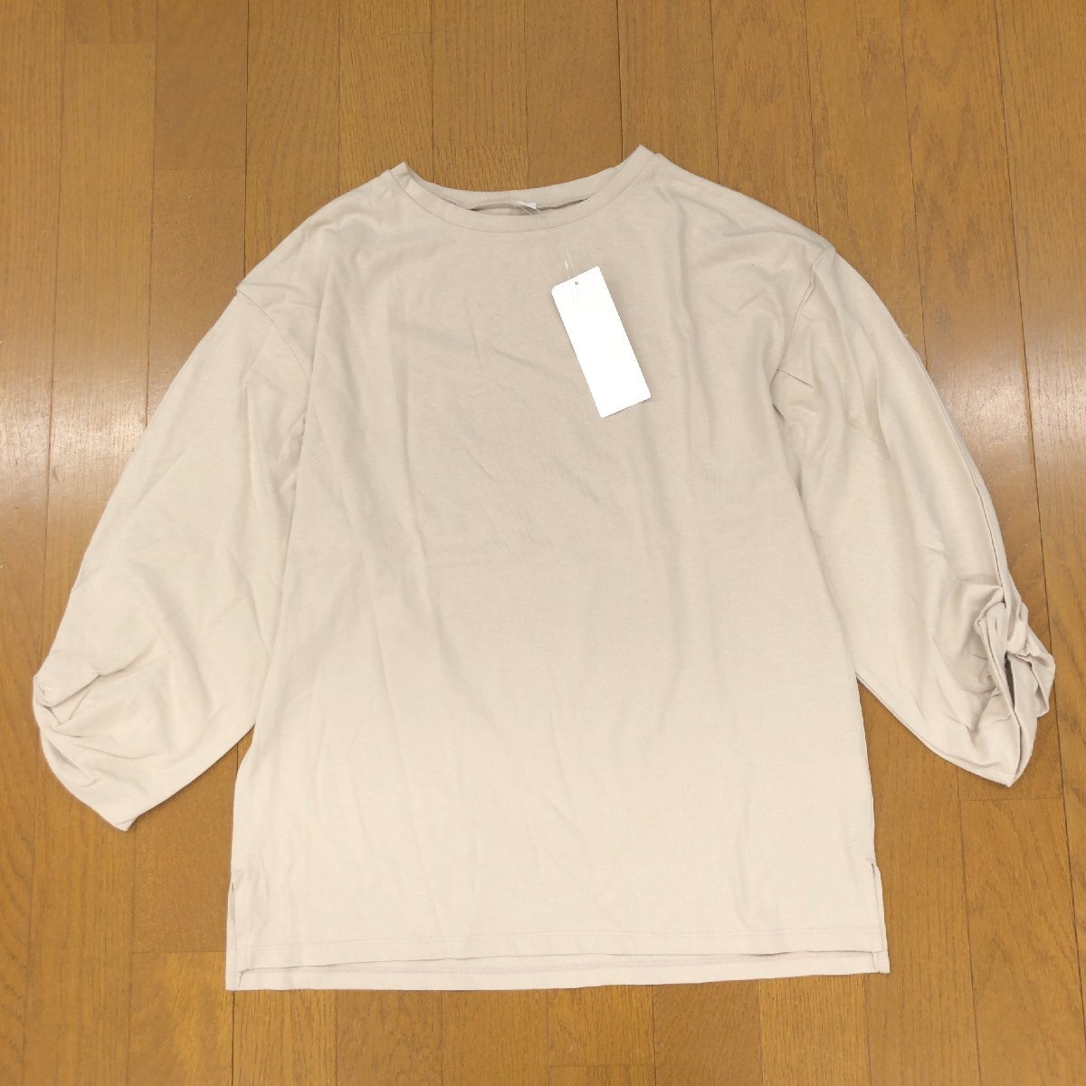新品 GLOBAL WORK グローバルワーク コットン100% ネジリスリーブ 8 シャツ S ベージュ カットソー ロンT Tシャツ レディース 未使用