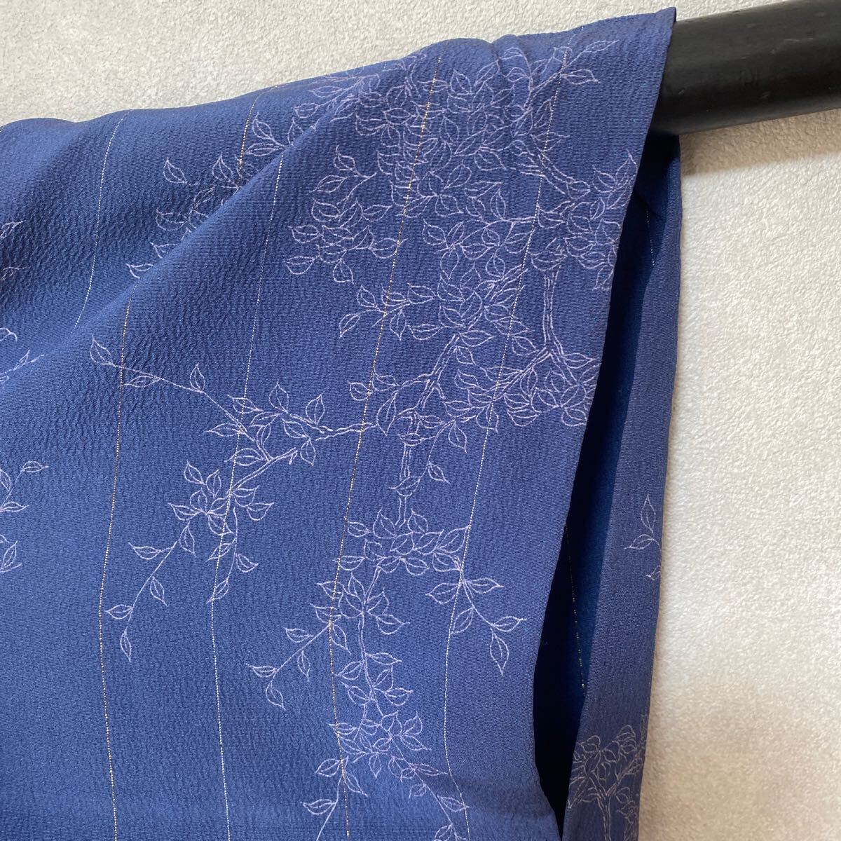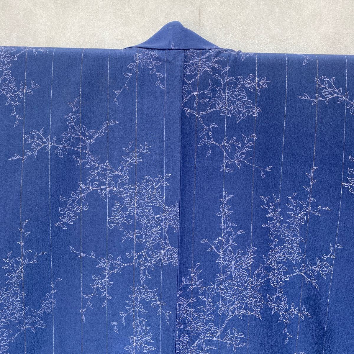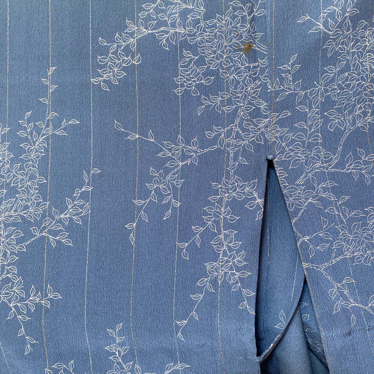 アンティーク 単衣 絽 紗 夏物 着物 正絹 昭和レトロ 大正ロマン モダン 和洋折衷コーデ リメイク 青 金糸 葉 お27-14w
