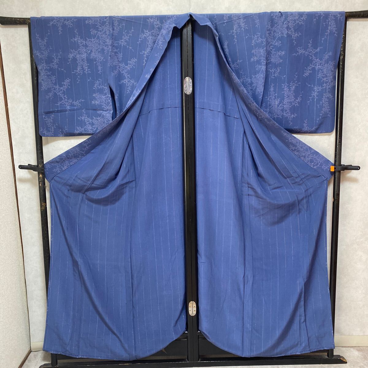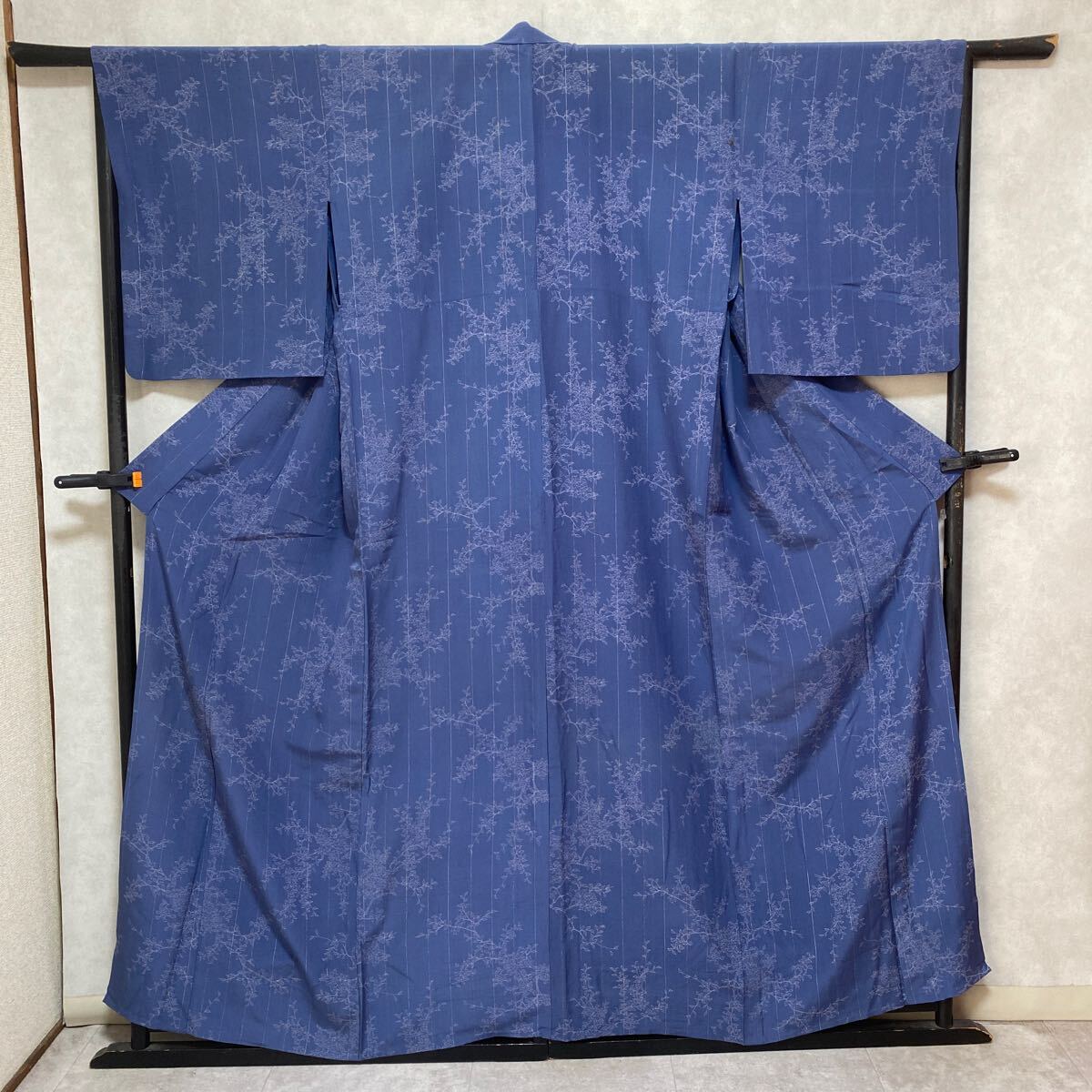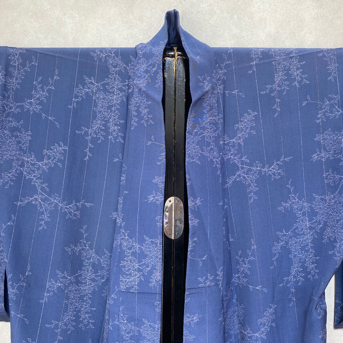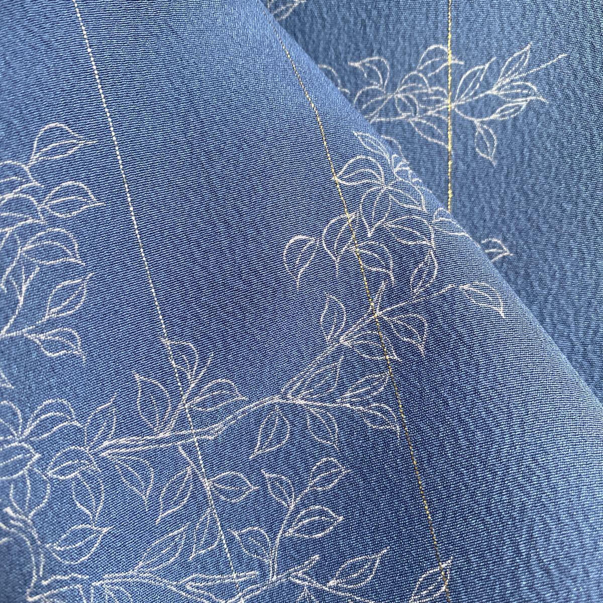 アンティーク 単衣 絽 紗 夏物 着物 正絹 昭和レトロ 大正ロマン モダン 和洋折衷コーデ リメイク 青 金糸 葉 お27-14w