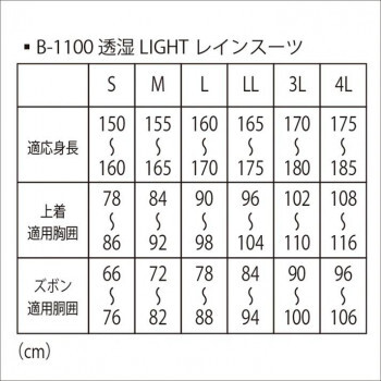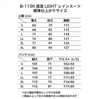 | 仕様 | はっ水 耐水圧:10000mmH2O以上 透湿度:8000g/m2・24h以上 【上着】 ・両サイドポケット(右×1、左×1) ・手首袖口はゴム絞り仕様 ・左右首元にフード調節が可能なドローコードを装備 【パンツ】 ・裾丈調節「ジャバラン機能」(3段階) ・裾の左右には調節用ボタンを装備 ・ウエストコード仕様 |
