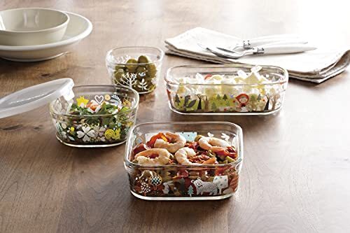 「iwaki(イワキ) 耐熱ガラス 密閉容器 シンジカトウ 森の中で 角型 3点セット パック&レンジ PS-PRNSNE3」▼4905284165826▼(商品説明)3点セット・11) 森の中で(シンジカトウ) 500ml×1個 ・200ml×2個 PS-PRNSNE3・・Color:11) 森の中で(シンジカトウ)Size:500ml×1個 ・200ml×2個Style:3点セットPatternName:通常タイプ・サイズ(約):200ml/9.3×9.2×高さ5.4cm、500ml/18.6×9.3×高さ5.5cm (表示容量/満水容量)・本体重量(約):800g・素材・材質:本体/耐熱ガラス、フタ/ポリプロピレン (耐熱温度 140度)・生産国:中国・電子レンジ:OK (フタをしたまま)、オーブン:OK (フタを外せば)、食洗機:OK、直火不可説明 かわいい柄入りパック&レンジのセット 保存容器であり、テーブルを彩る器にもなり、調理道具にもなる、1つで3役こなすキッチン容器の優れもの 【冷蔵庫スッキリ。ひと目でわかる】 中味がはっきりよく見えるので何があるかひと目で分かる 【フタをしたまま冷凍・電子レンジOK】 保存容器の機能をフル活用でお料理を楽しく 【オーブンOK】 フタを外せばオーブンOK 【フタも本体も食洗機OK】 お手入れ簡単。サラッと洗いやすくいつも清潔 【におい移り・ヌルヌルが気にならない】 ガラスだから変色・におい移りも少なく、あのいやなヌルヌルも気にならない 【セット内容】200ml ×2個、500ml ×1個 【注意】 耐熱ガラスは熱に強いガラスであり、衝撃に強い強化ガラスとは異なりますので、丁寧にお取扱いください