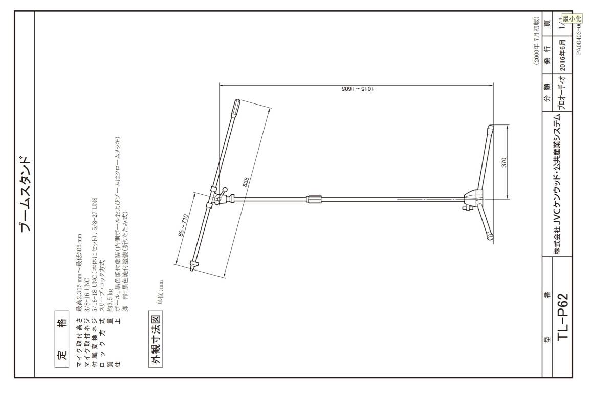 仕様はここに https://www32.jvckenwood.com/jvc/system/pro-dl/search/index.asp?Key=Search&n1=TL-P62&vi=20&mk=all&pg=1&sl=TL-P62