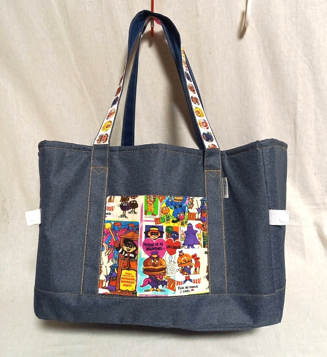 レアなマクドナルドのキャラが載ったリボンを縫い付けてリメイクしました。