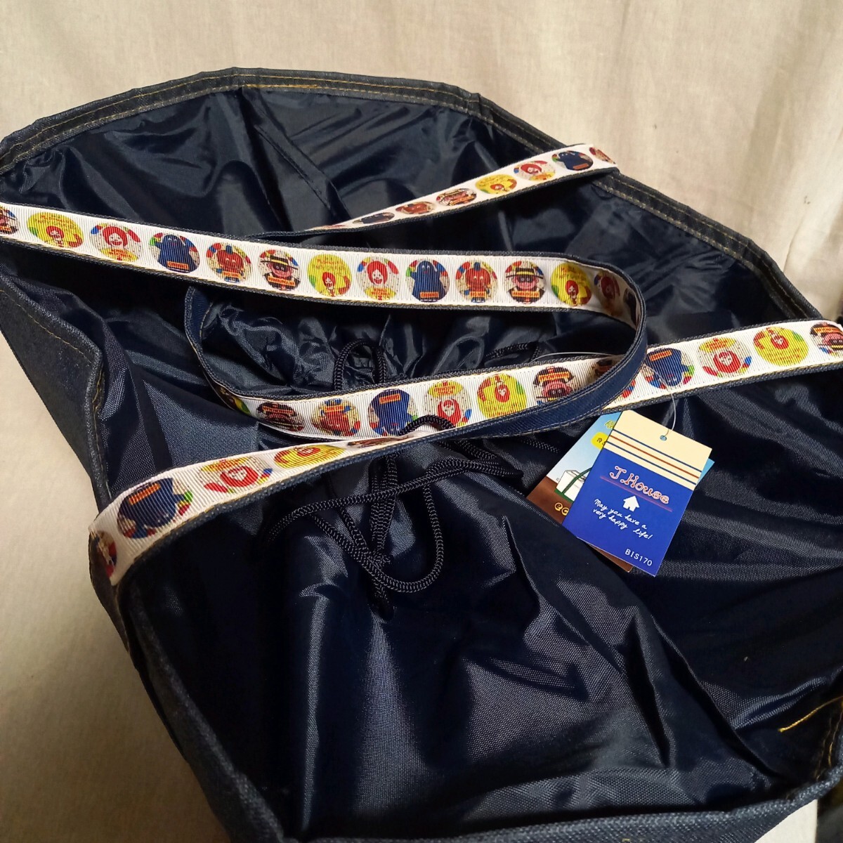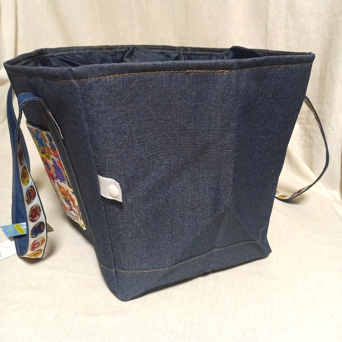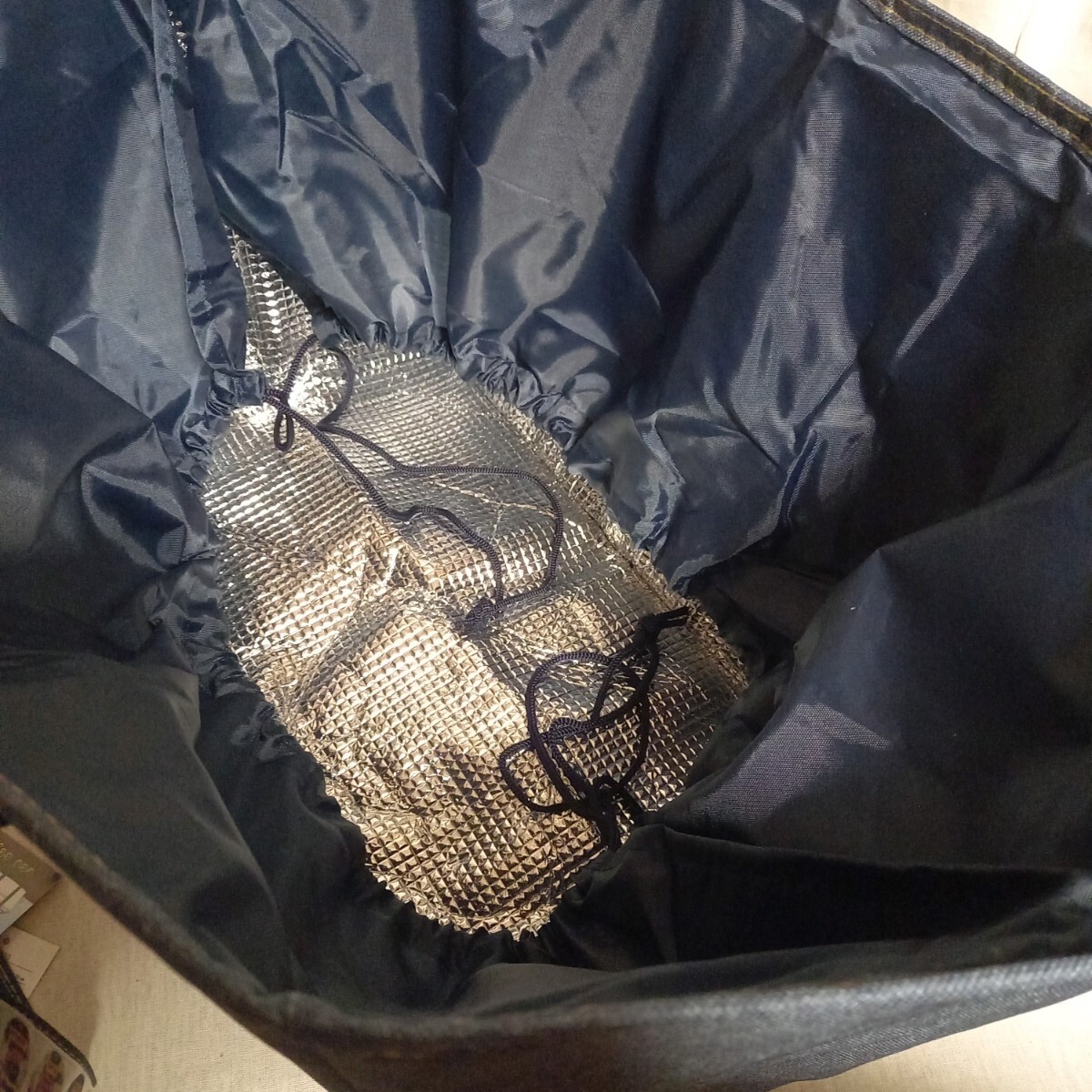 こちらは市販のかご型の保冷保温機能のトートバッグをリメイクしたお品です。