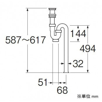 | 洗面器のオーバーフロー用です。床面方向に排水を流す場合に使うSトラップです。 |