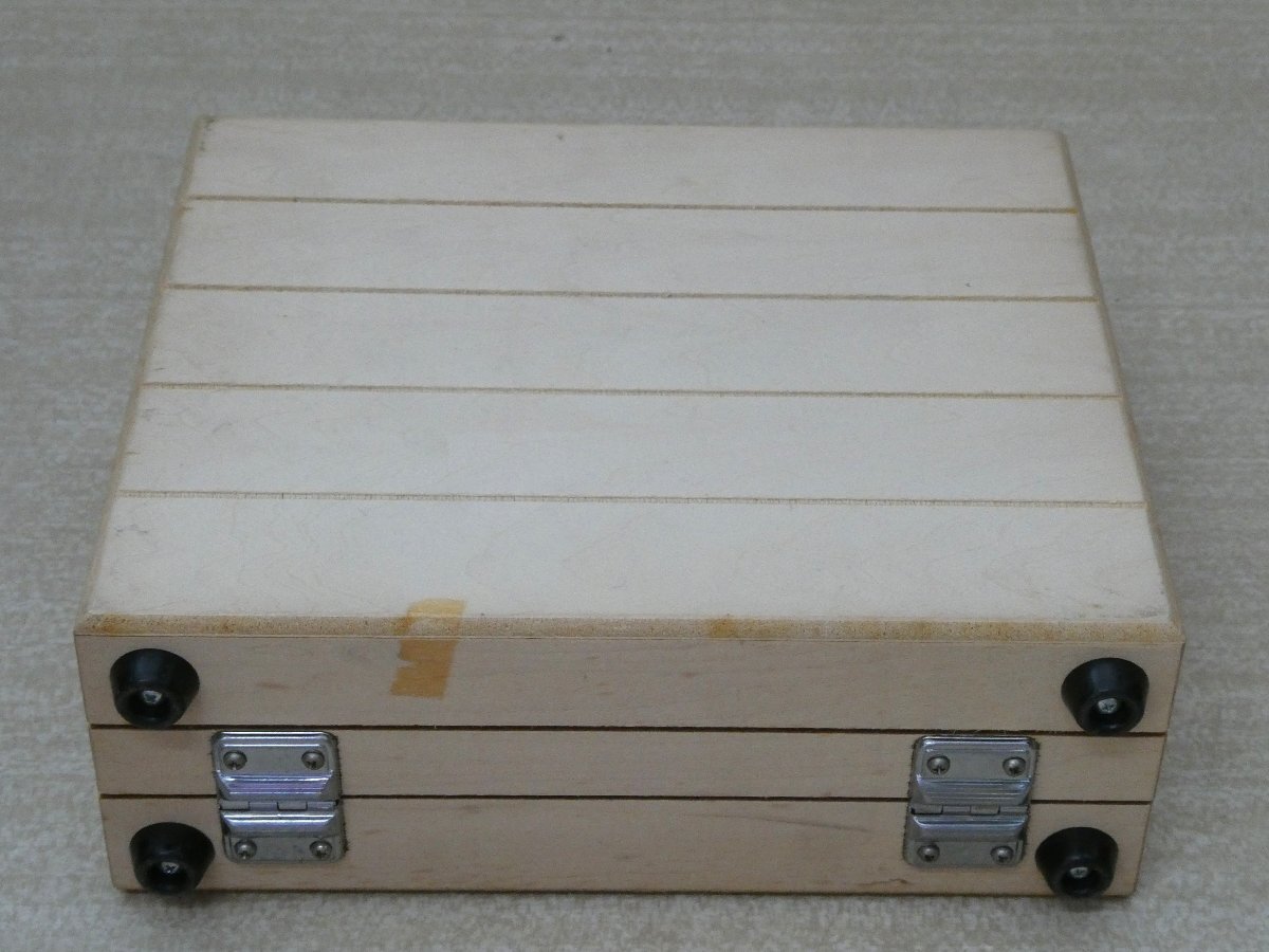 外観にキズや汚れ、シミ、金属劣化などあります。かぶせフタ金具は、少々上に浮きやすくなっています。中はフェルト生地のため、小さいゴミが多数ついています。内部の使用感は少ないです。