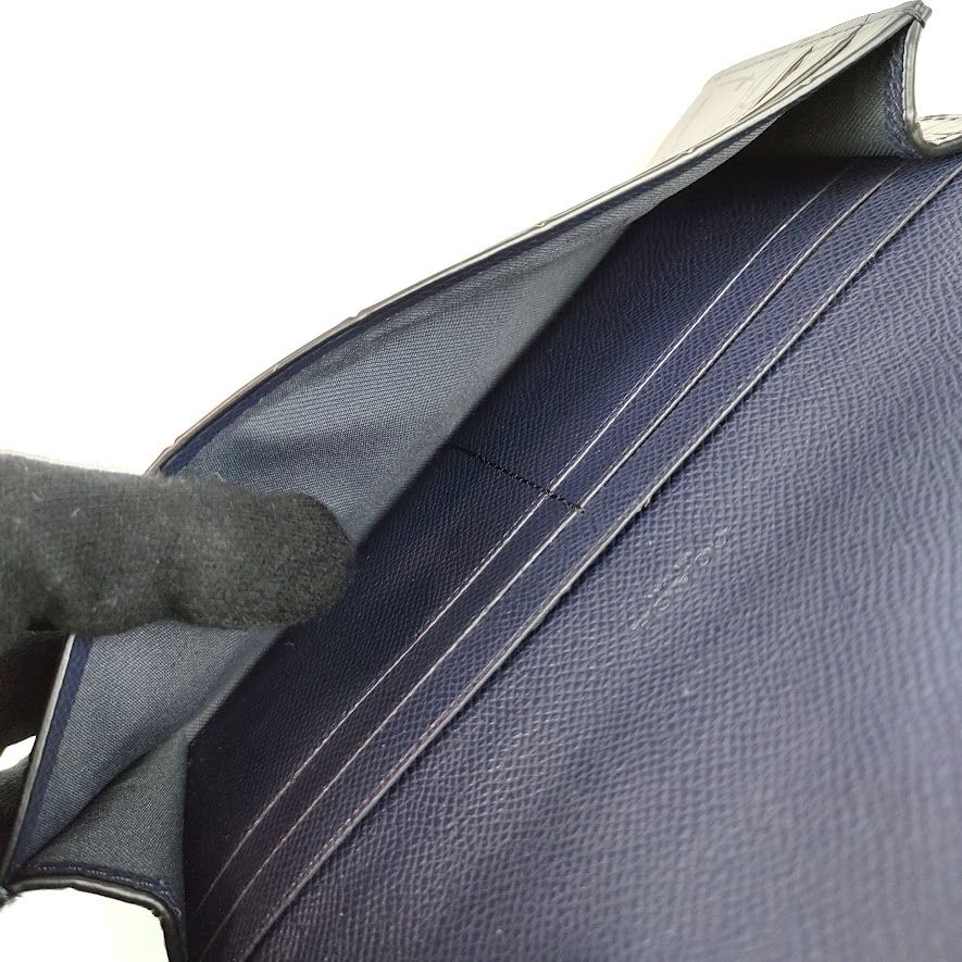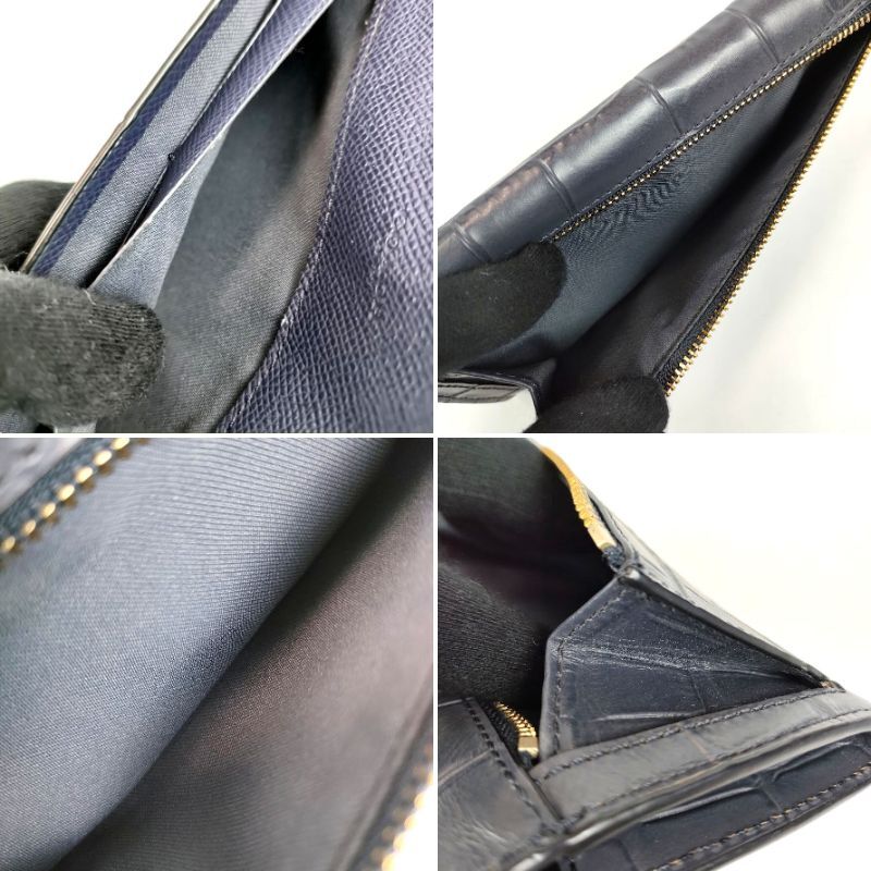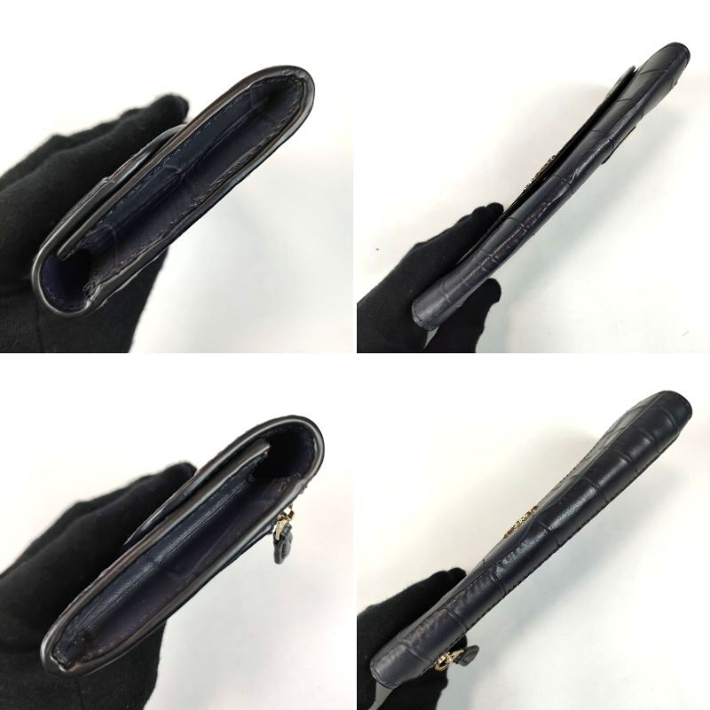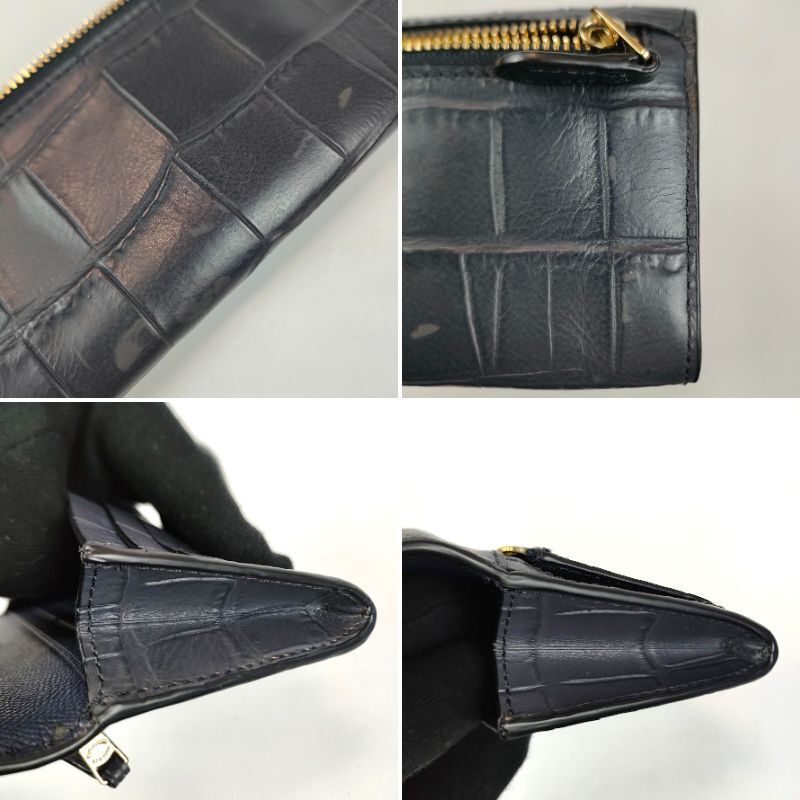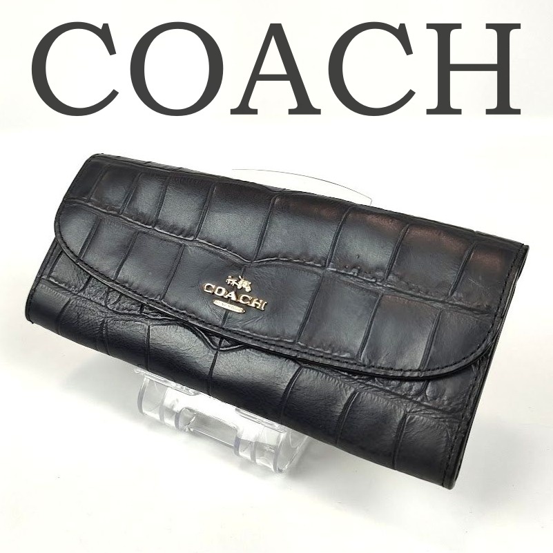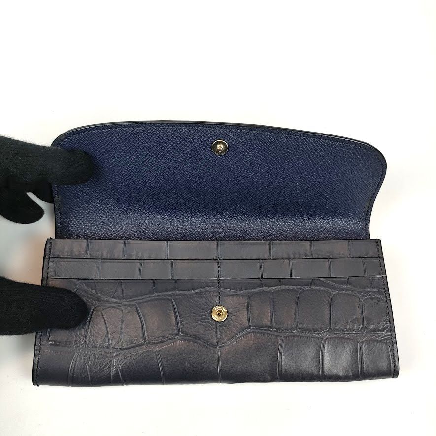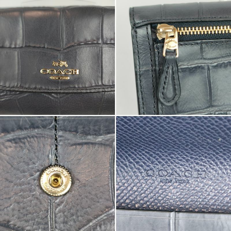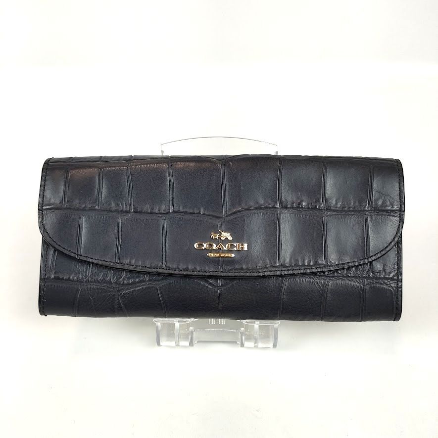 COACH コーチ 長財布 クロコ型押し ネイビー系 紺 小銭入れあり メンズ レディース フラップ かぶせ