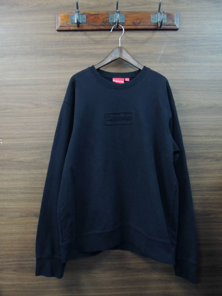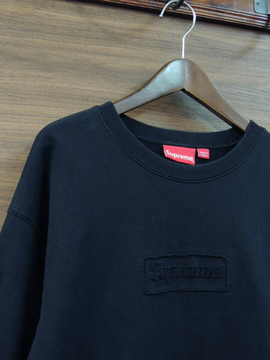 ★希少 XLサイズ シュプリーム SUPREME 20SS Cutout Logo Crewneck Black カットアウト ボックスロゴ クルーネック スウェット 黒 ブラック