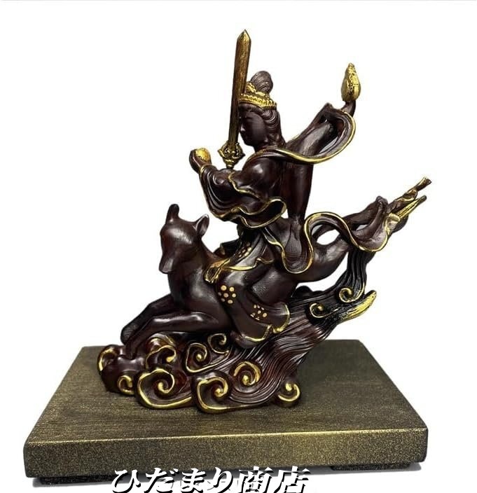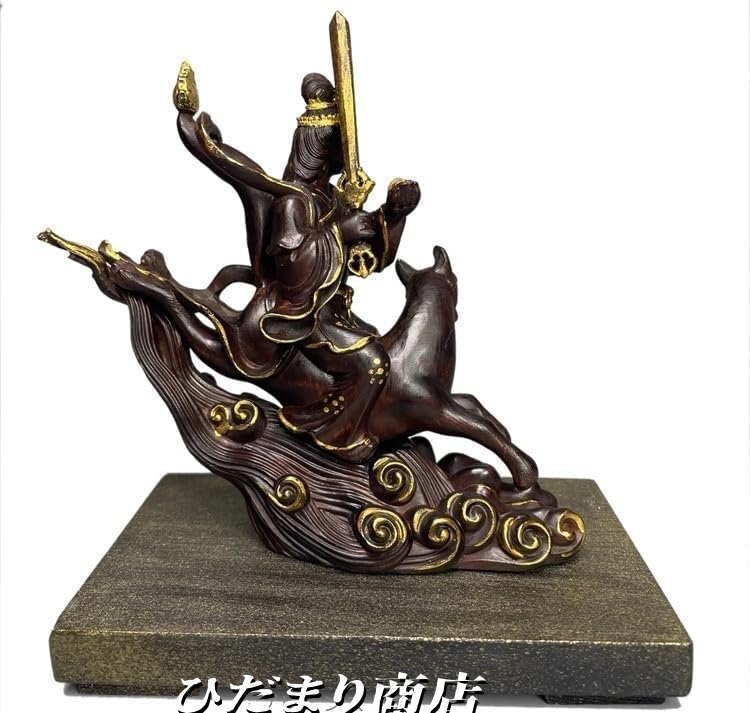 高級ツゲ材使用. 仏像 荼吉尼天 騎狐像 レトロカラー 桧木 荼枳尼天 稲荷神様 ダキニ天 木彫仏像 木彫り 木製