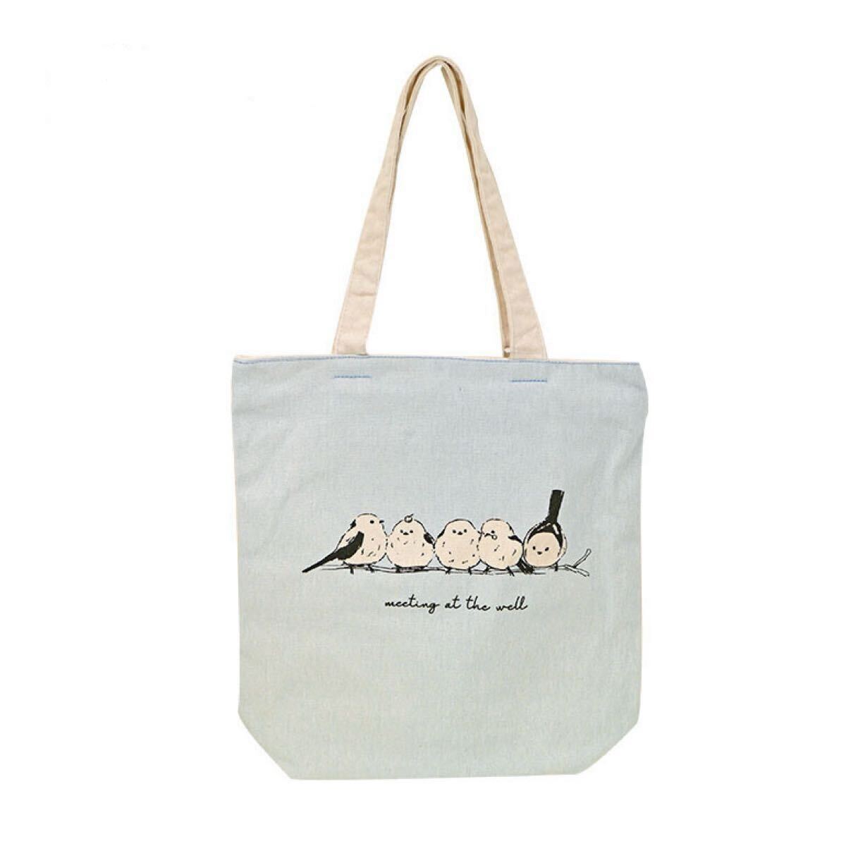 トートバッグ♪ ファスナー付きA4トート みるくフレンズ シマエナガ 小鳥 内ポケット・外ポケット付き