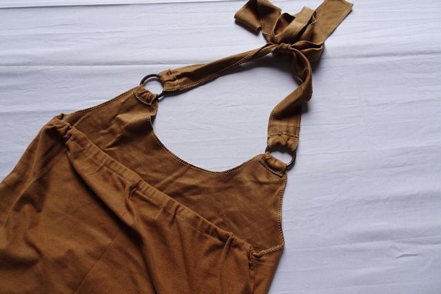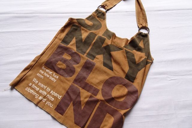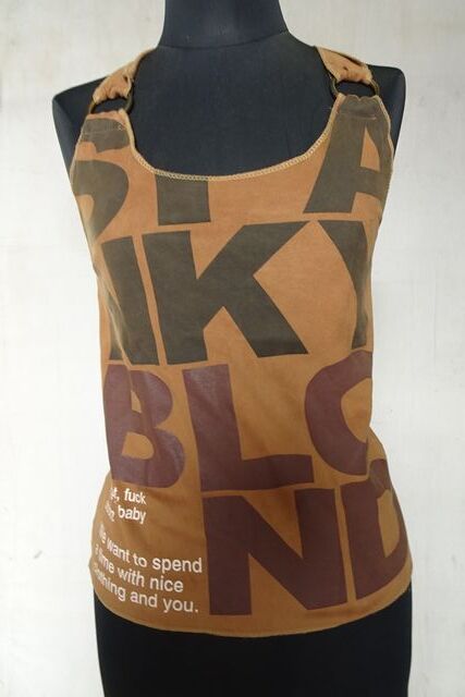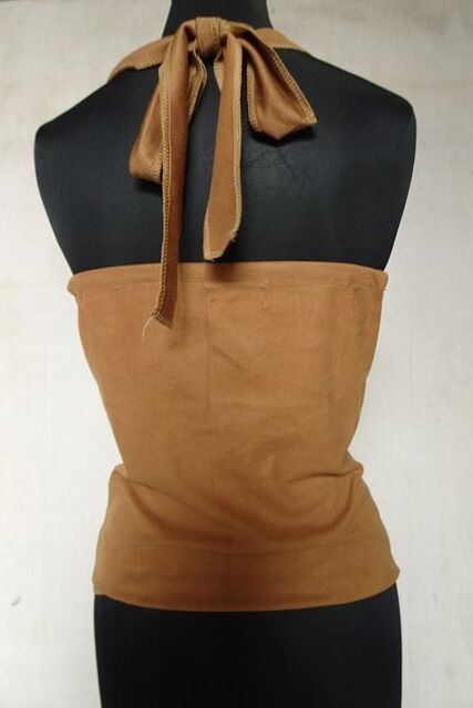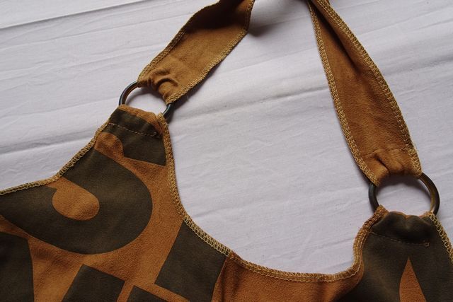 ホルターネックキャミソール/タンクトップ/スエードライク生地/文字プリント/端ミシン処理/輪っか/明るい茶/ライブラウン(5/26R7)