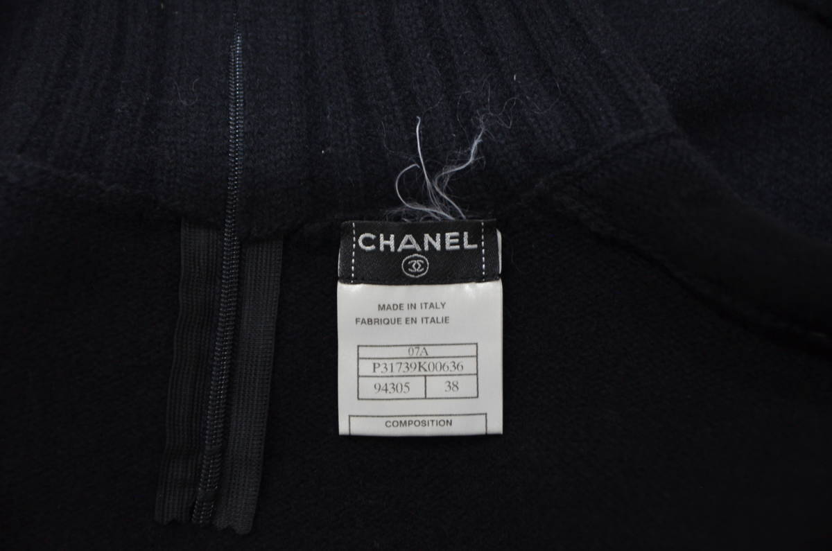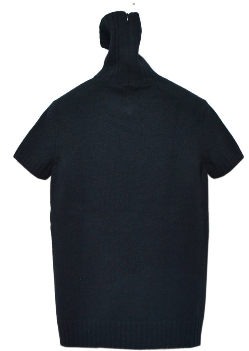 07A CHANEL シャネル カシミヤ混 タートルネック 半袖 ニット セーター トップス 38 ブラック Y-24993B