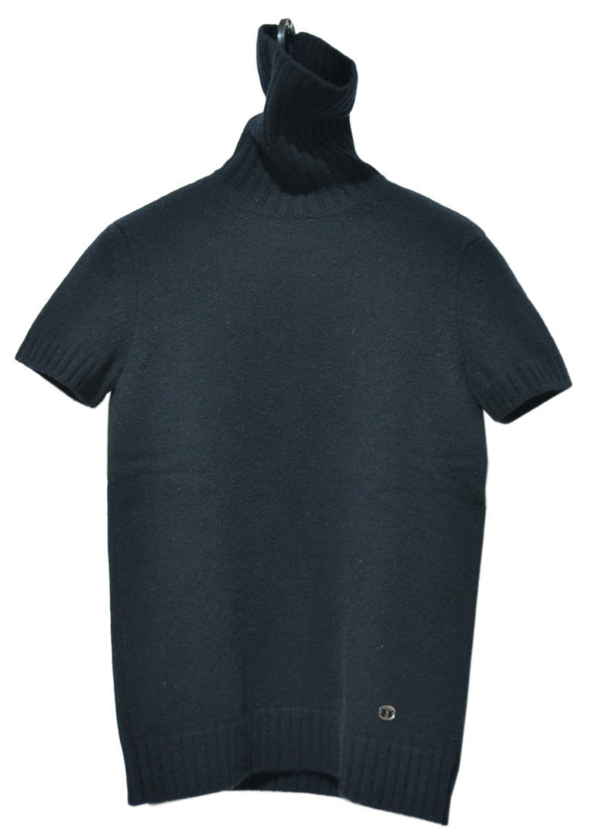 07A CHANEL シャネル カシミヤ混 タートルネック 半袖 ニット セーター トップス