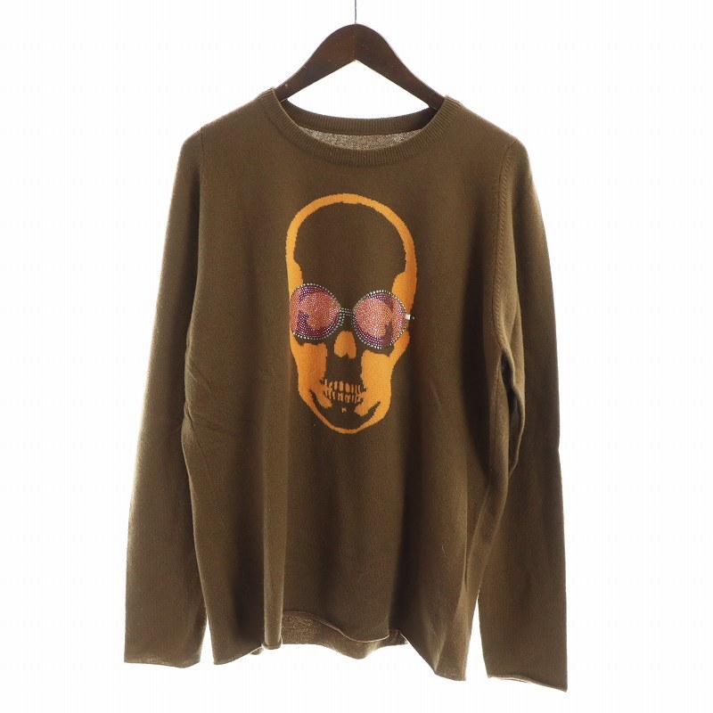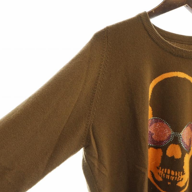 ルシアンペラフィネ LUCIEN PELLAT-FINET ニット セーター 長袖 カシミヤ スカル ラインストーン ロゴ M 茶 ブラウン