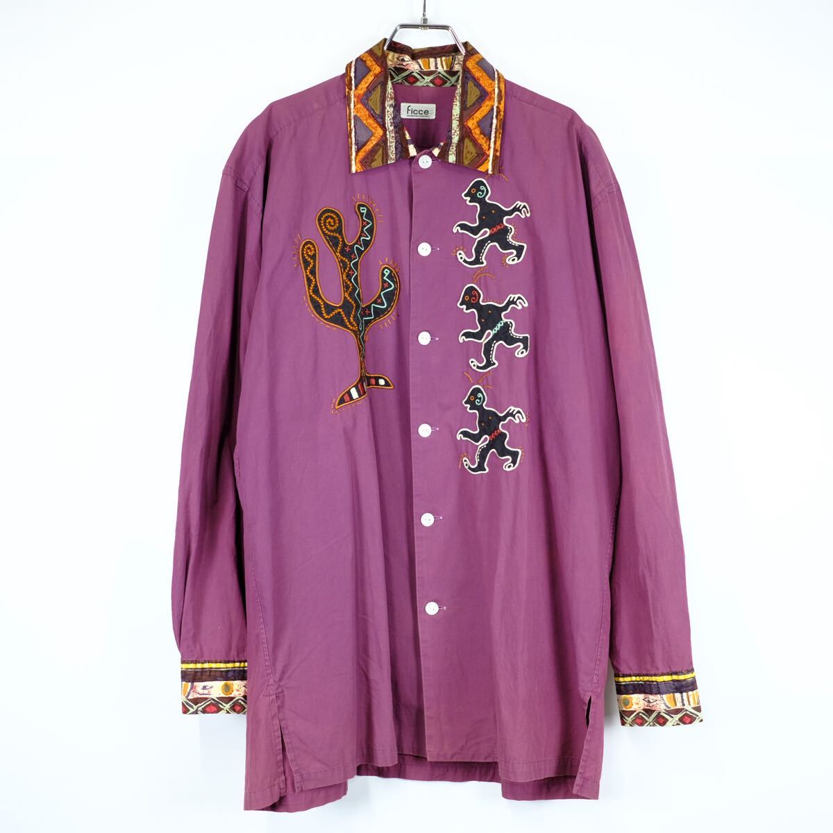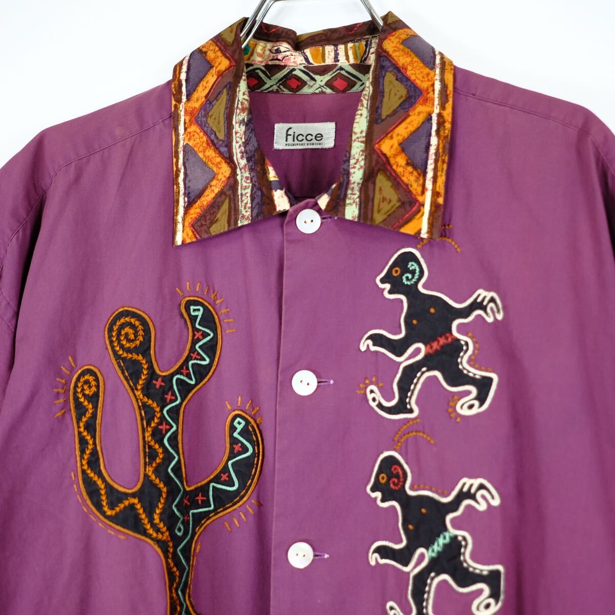 手仕事によるパッチワークや刺繍で、宇宙人のようにも見える人がどこかプリミティブな雰囲気で作られています。