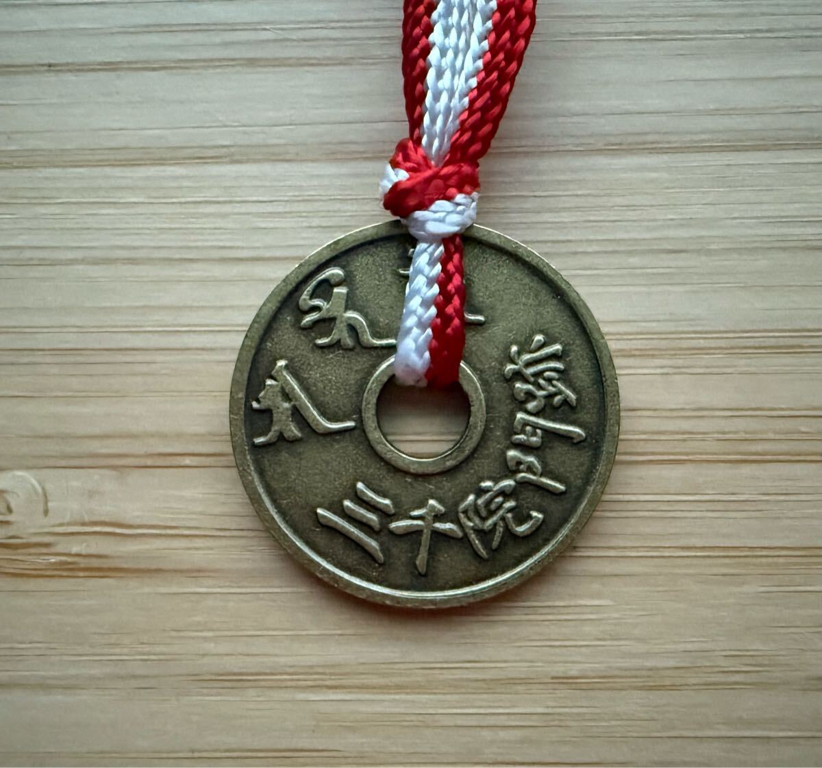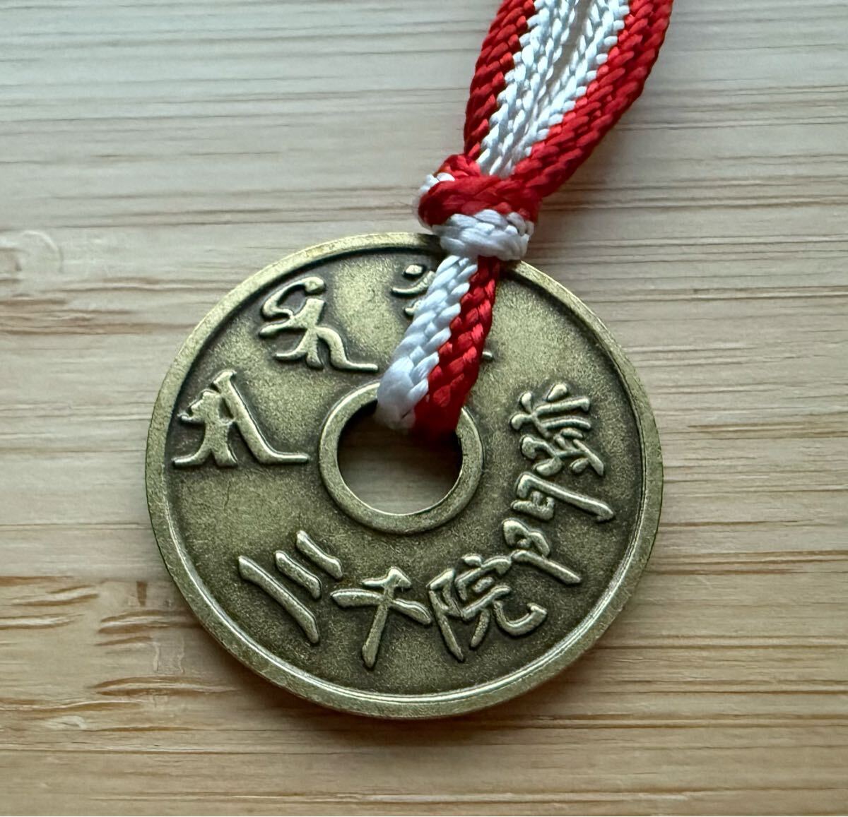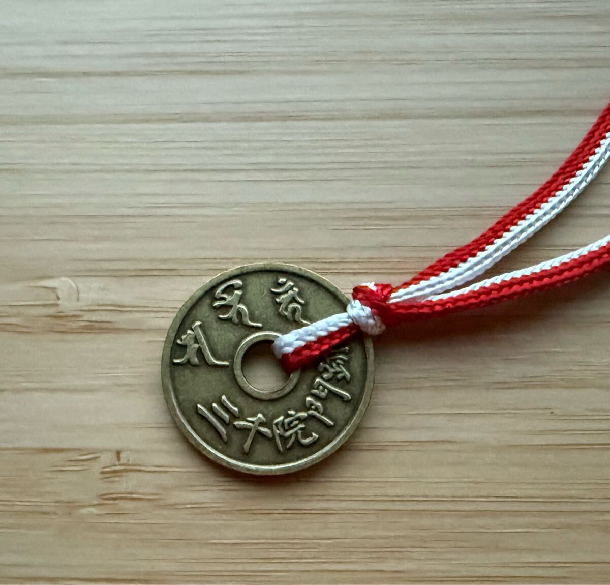 福銭 三千院 直径約2.5cm 招福 未使 梵字 開運 魔除 縁起 金運 財布 菊華 京都 大原 仏閣 御守 lucky charm amulet KYOTO Sanzen-in Temple