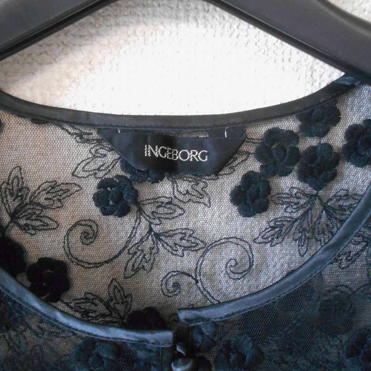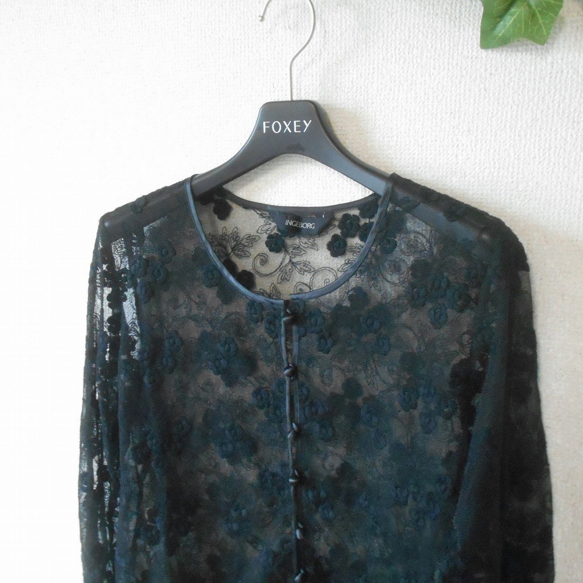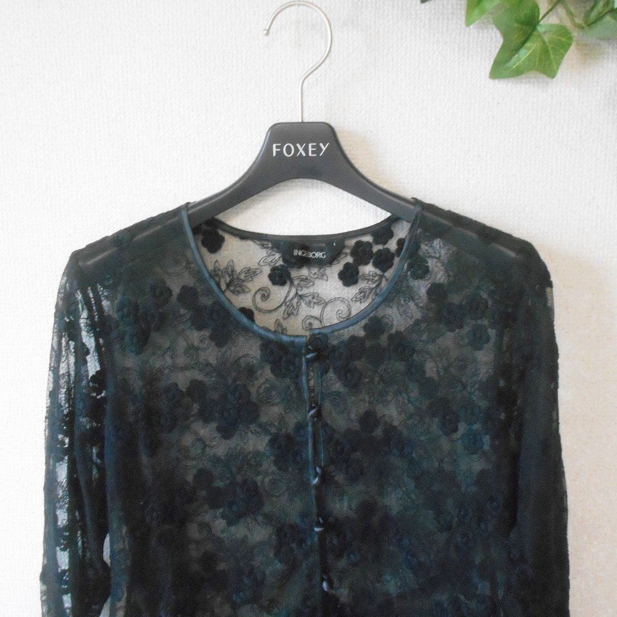 インゲボルグ INGEBORG ジャケット カーディガン 総 チュール 刺繍 入り 黒 日本製