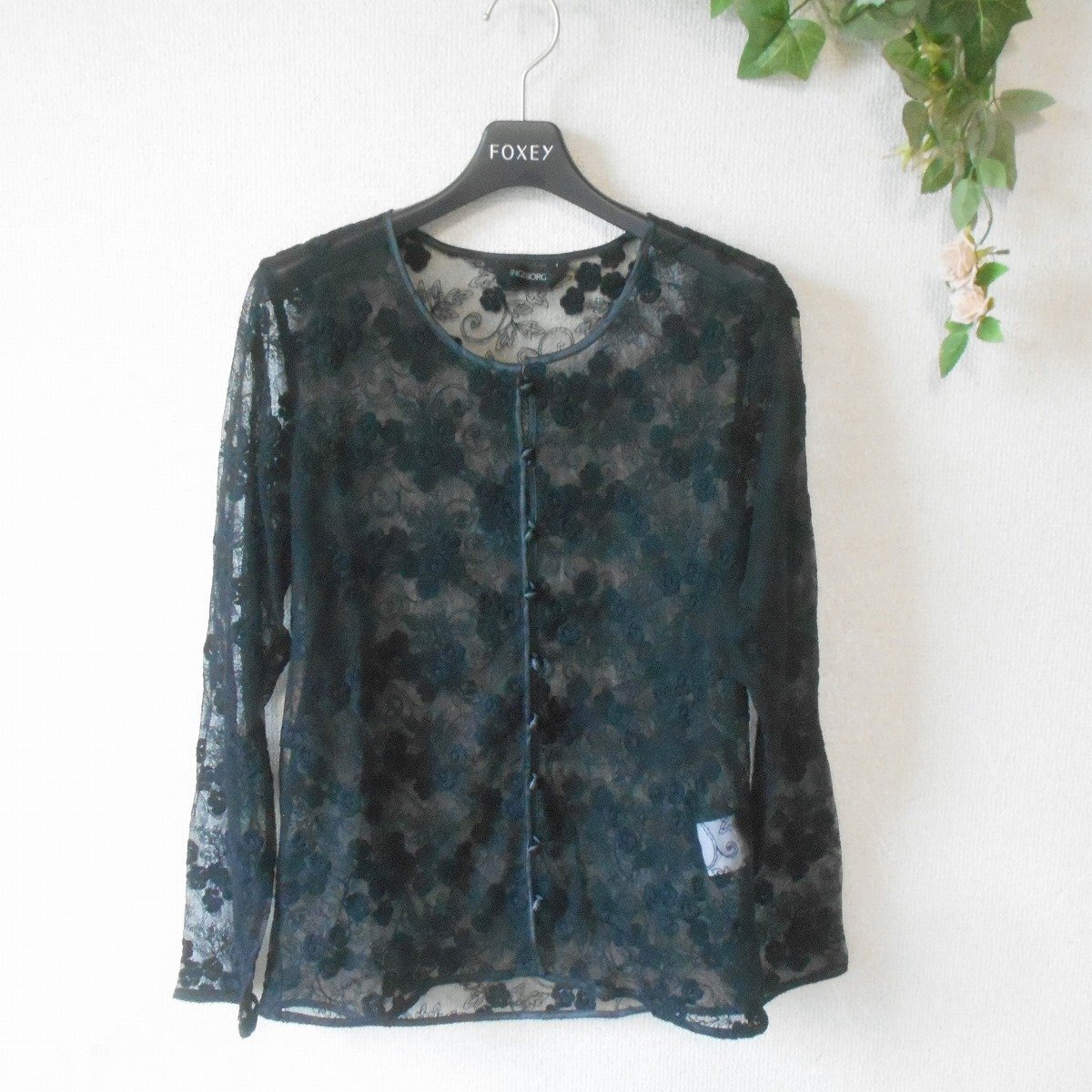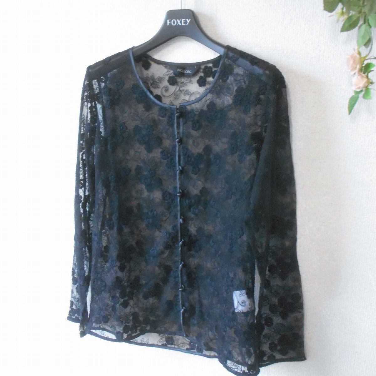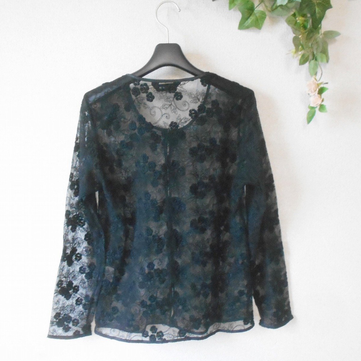 インゲボルグ INGEBORG ジャケット カーディガン 総 チュール 刺繍 入り 黒 日本製
