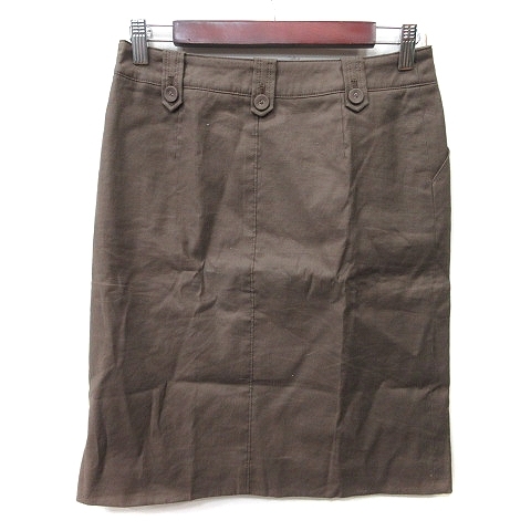 ロペ ROPE タイトスカート ひざ丈 麻 リネン 63-90 茶 ブラウン /YI レディース