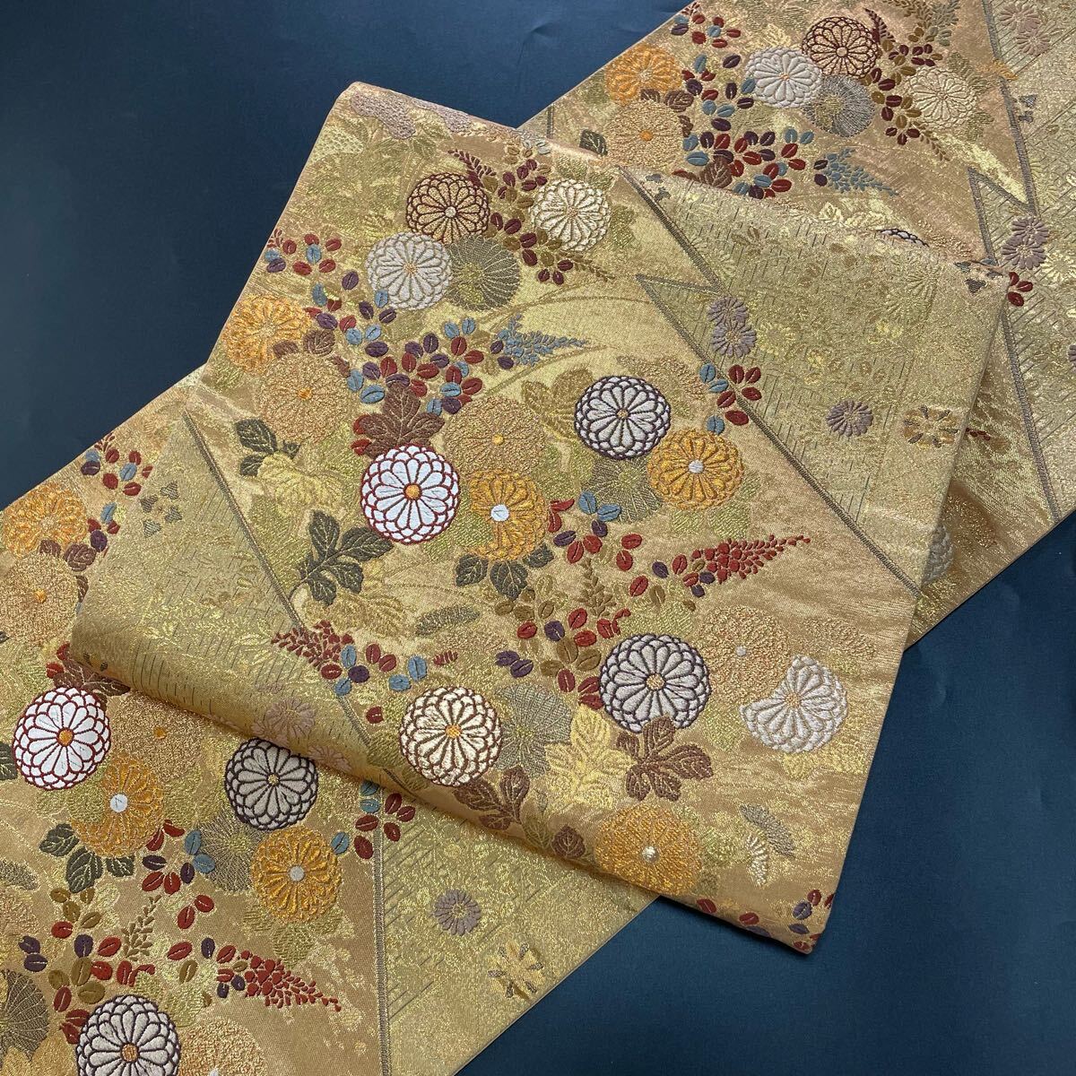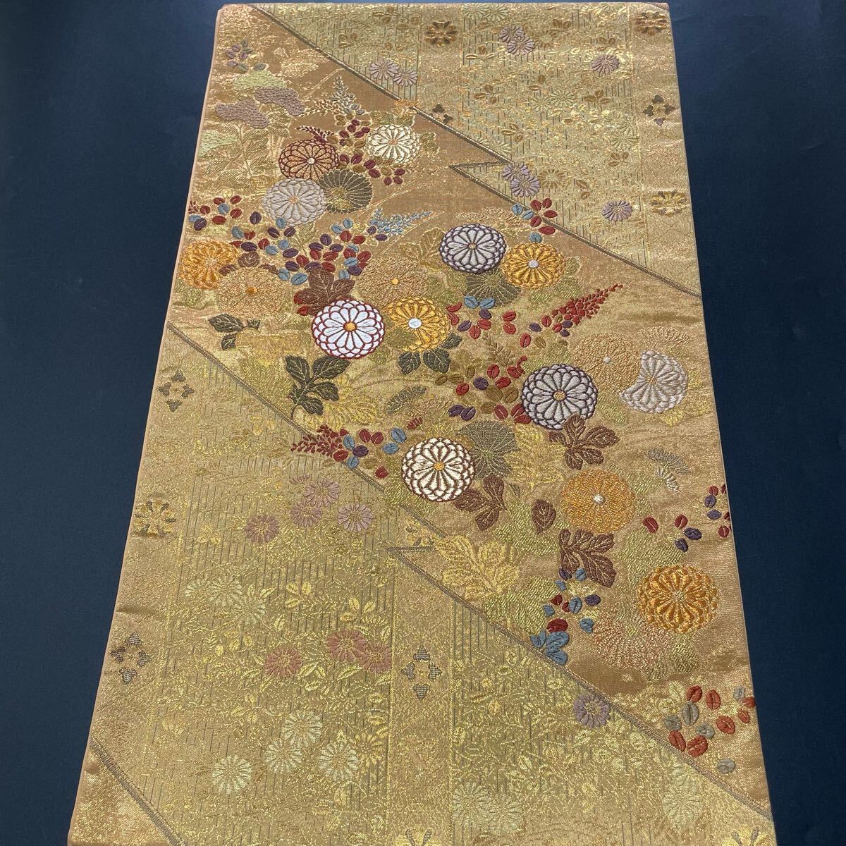 ・菊の花がとても華やかで素敵な六通袋帯です。 ・特記する汚れやシミもなく、状態がとても良いです。 ・すぐにでも着用していただますので、おすすめの帯となっております。 ・お安く出品致しますので、是非この機会にいかがでしょうか。 |