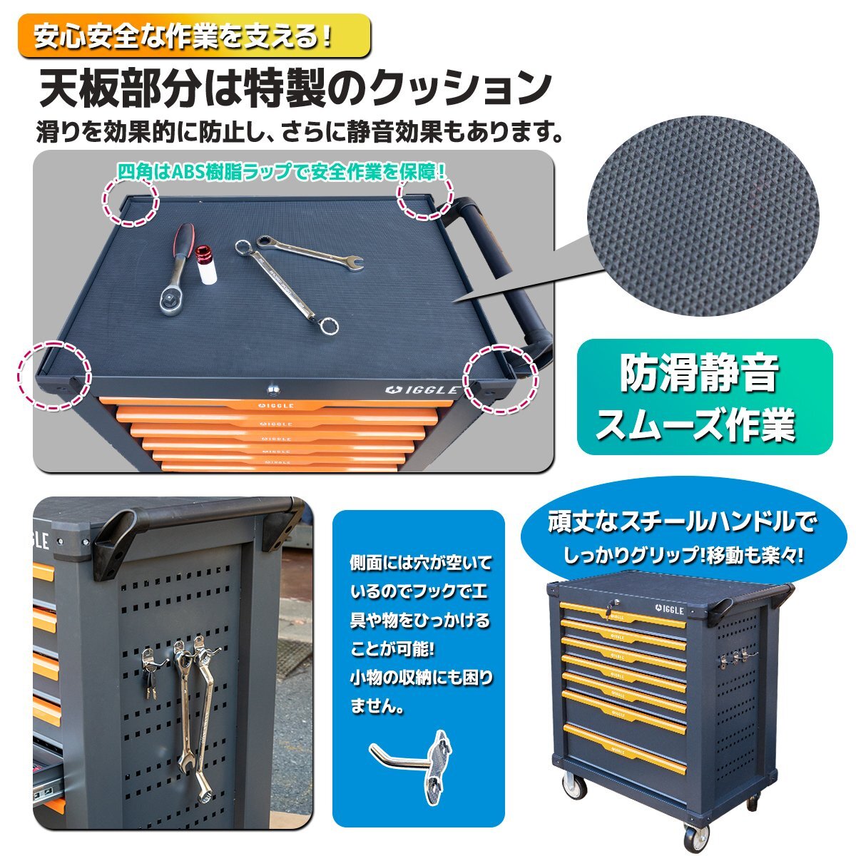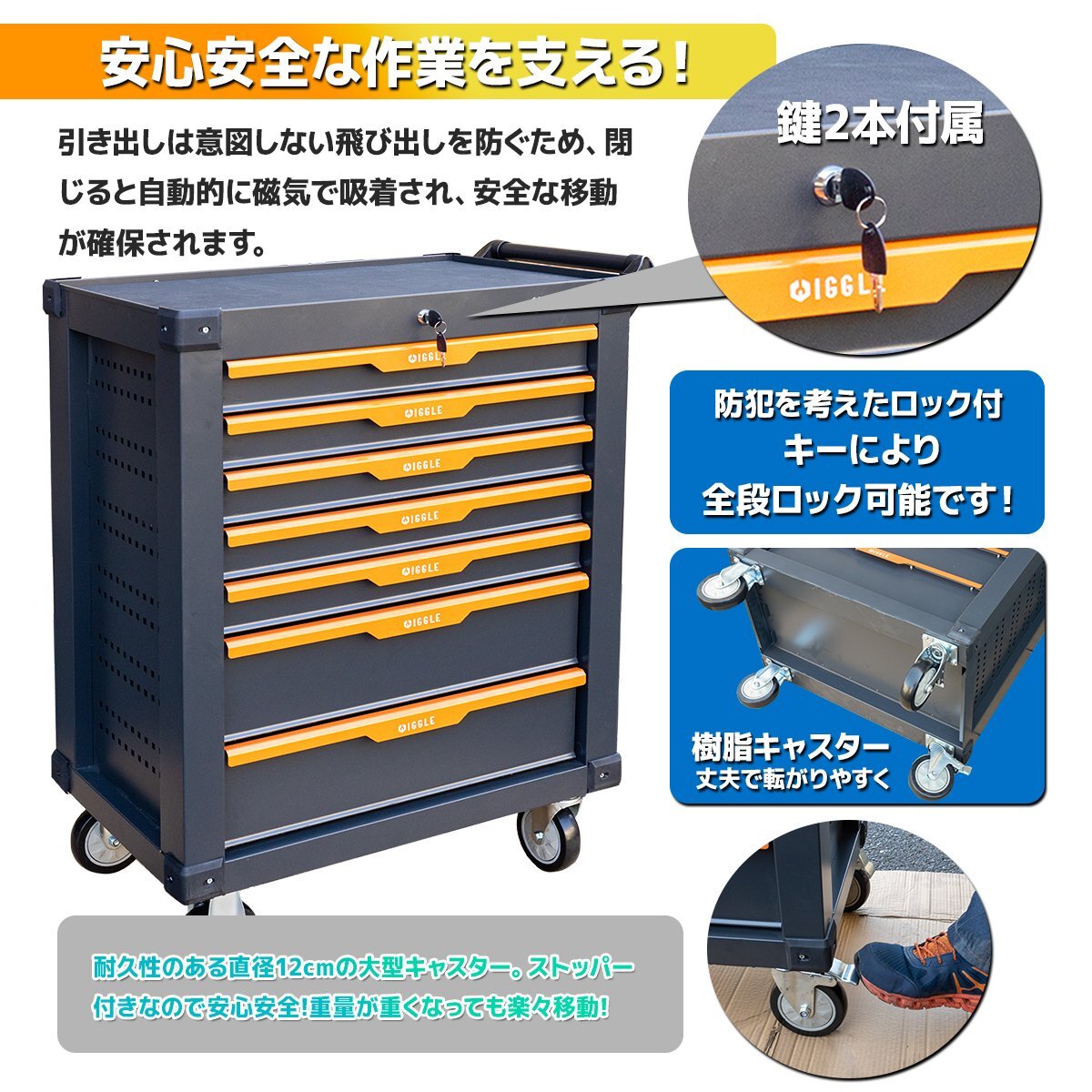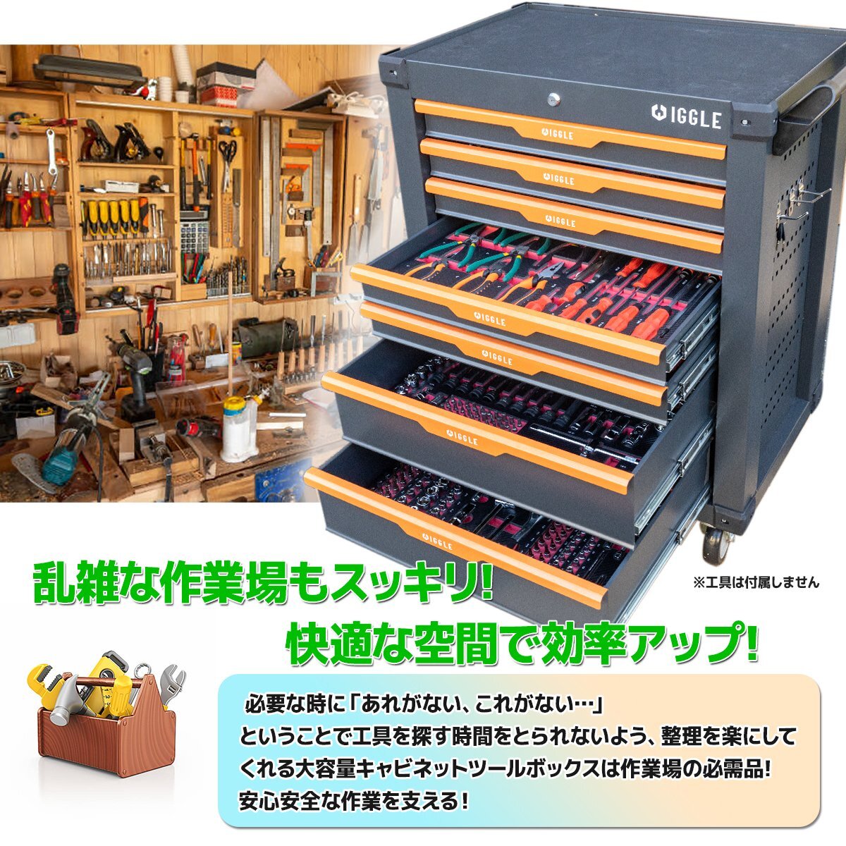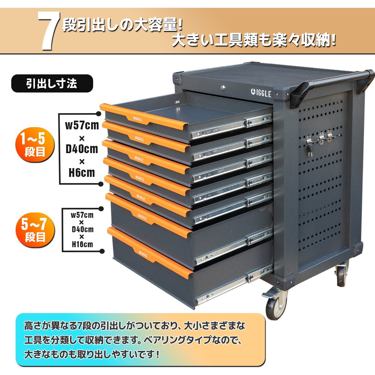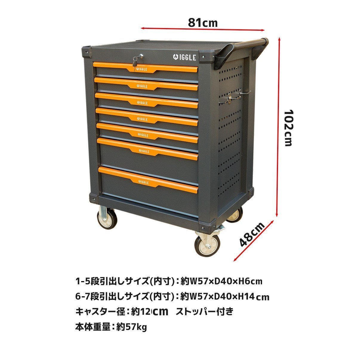 | 商品の詳細 | ローラーキャビネット 7段引き出し工具箱 引き出しは全てベアリング式。 チェスト7段大型キャビネットボックス。 キャスタにストッパー付き。 保管・防犯用鍵ロック付。 ■商品仕様 ・全体サイズ(約):810x1020x480mm ・薄型引き出し内寸(約):横570x奥行400x高さ60mm ・深型引き出し内寸(約):横570x奥行400x高さ140mm ・キャスター径(約):120mm ストッパー付き ・梱包サイズ(約):550x770x920mm ・重 量(約):G57kg | |