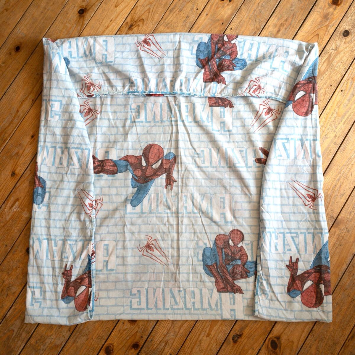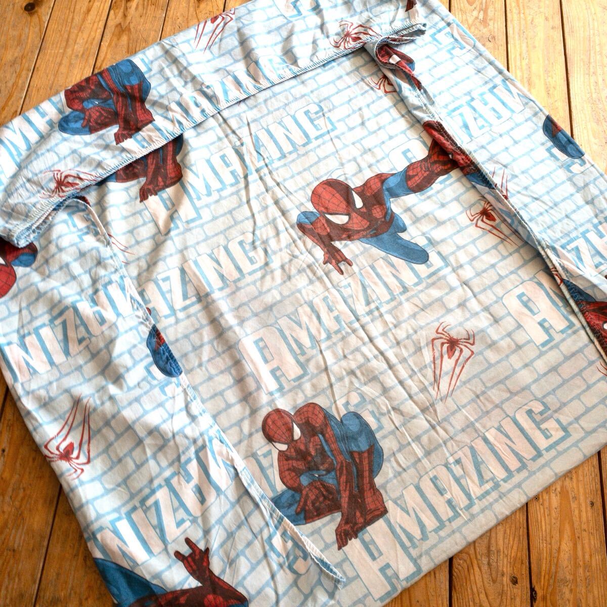 アメリカで購入したセカンドハンド(古着)の、 スパイダーマンのベッドシーツです。