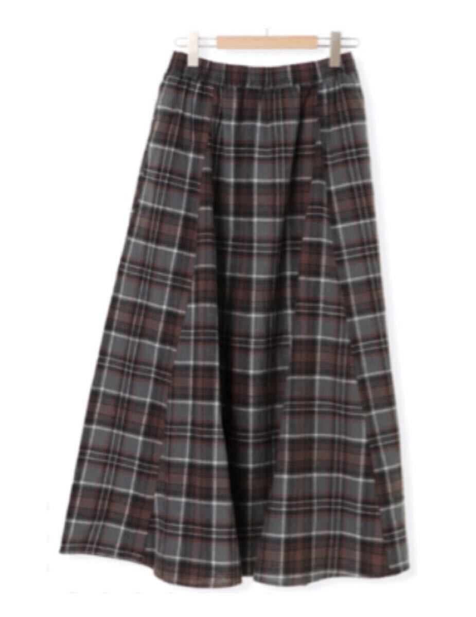 シックな配色で上品な大人顔に仕上げたチェックスカート。ふんわりと広がるフレアシルエットが、フェミニンな女性らしい印象を演出してくれます。ウエストゴム仕様で穿き心地もラクチン◎デイリーユースにも重宝しそうなアイテムです。