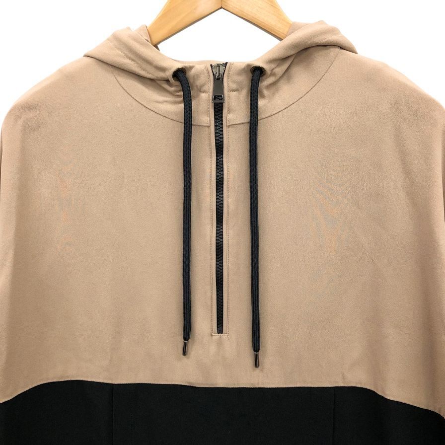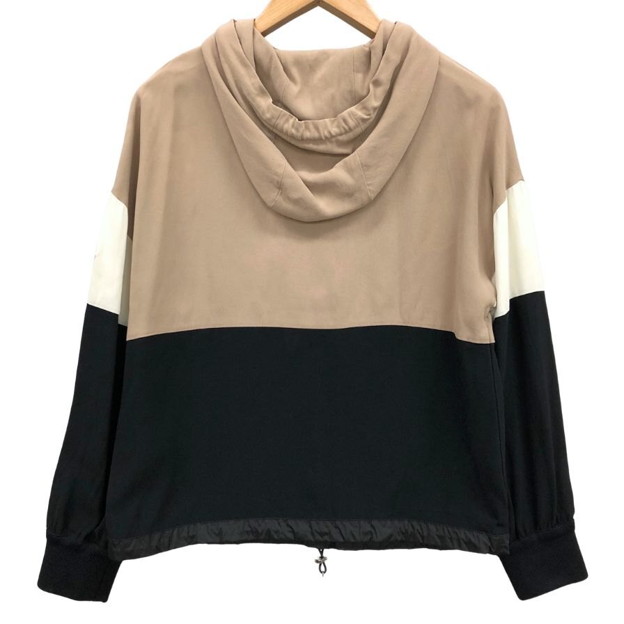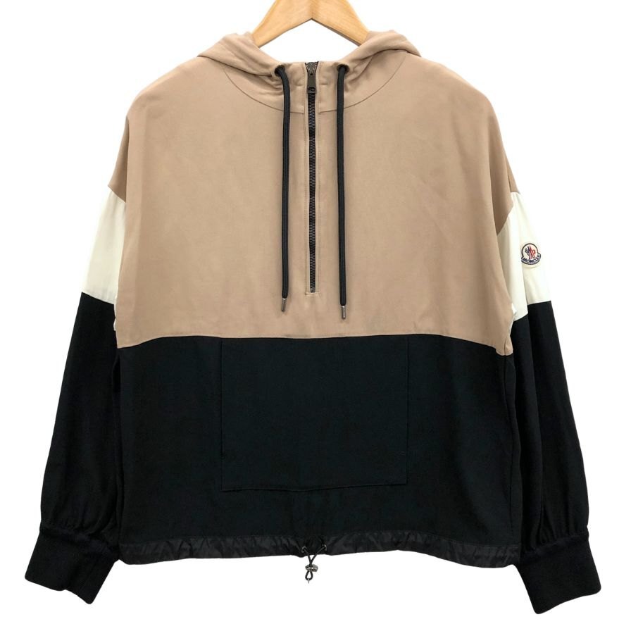 美品◆モンクレール 21AW プルオーバーパーカー CAMICIA レディース 40 ブラック×ベージュ G20932F00003 MONCLER 【AFB50】