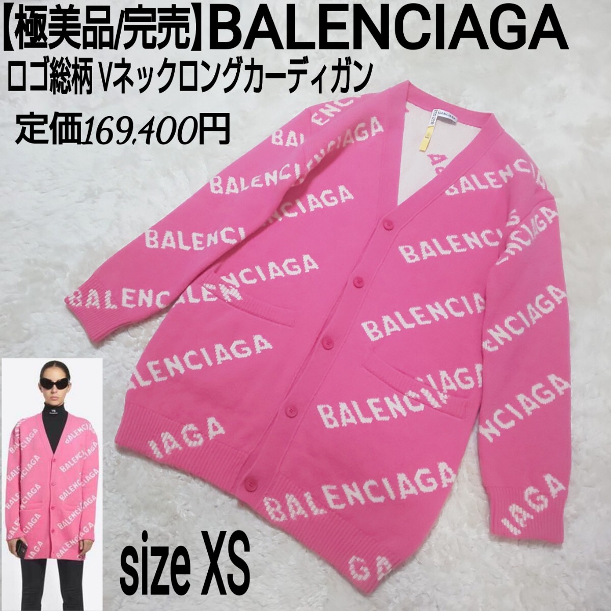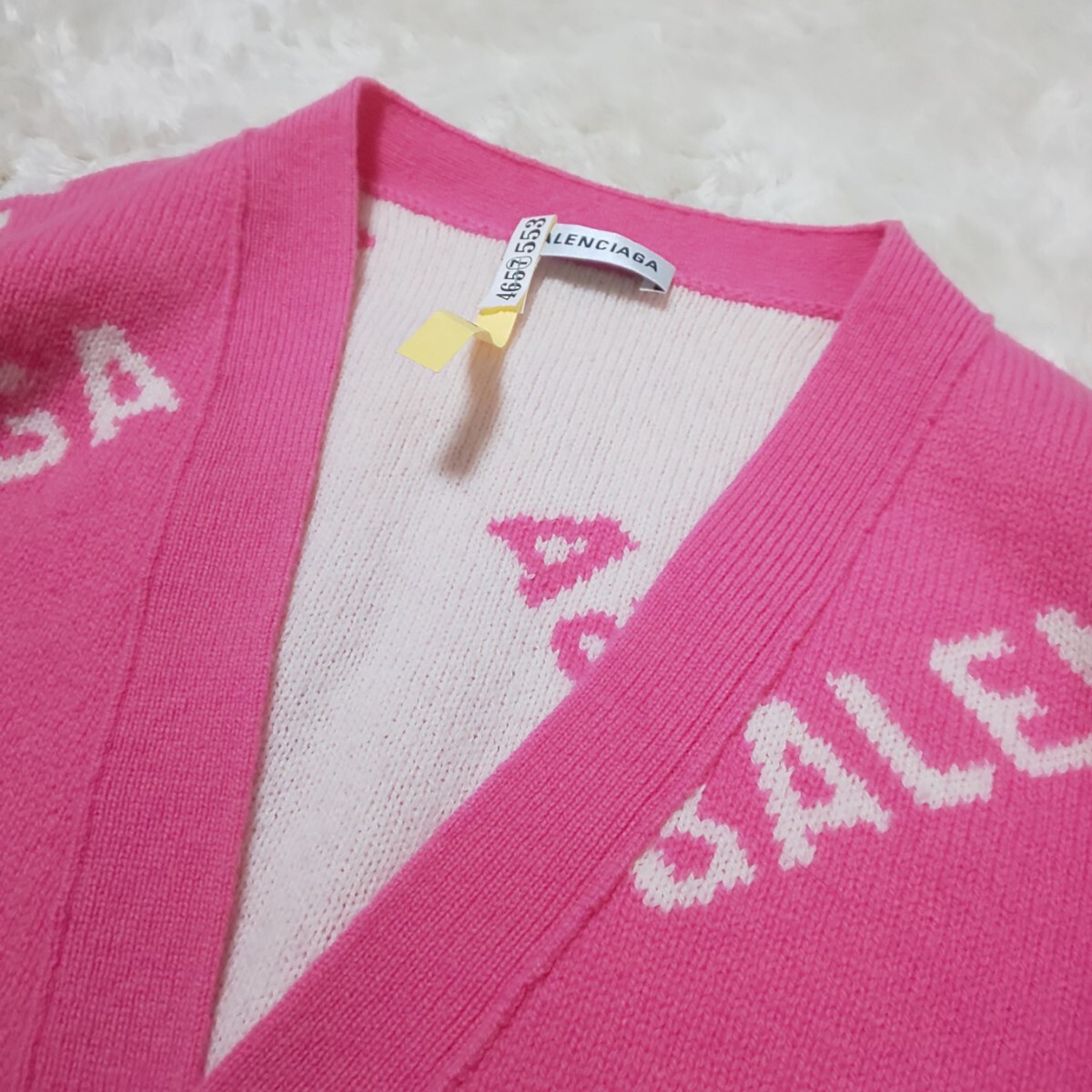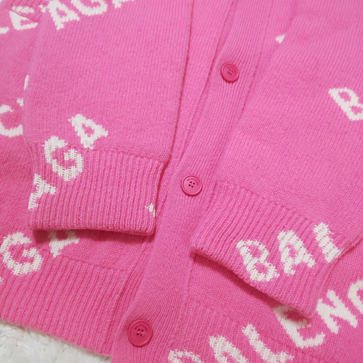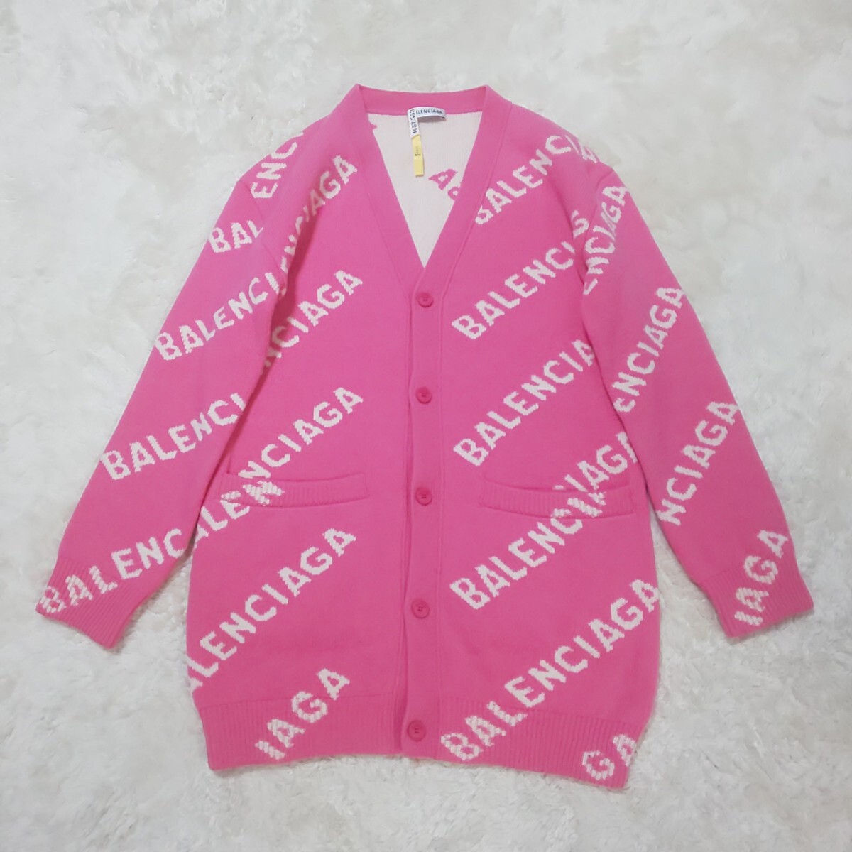 【極美品/完売】BALENCIAGA バレンシアガ ロゴ総柄 Vネックロングカーディガン ポップピンク