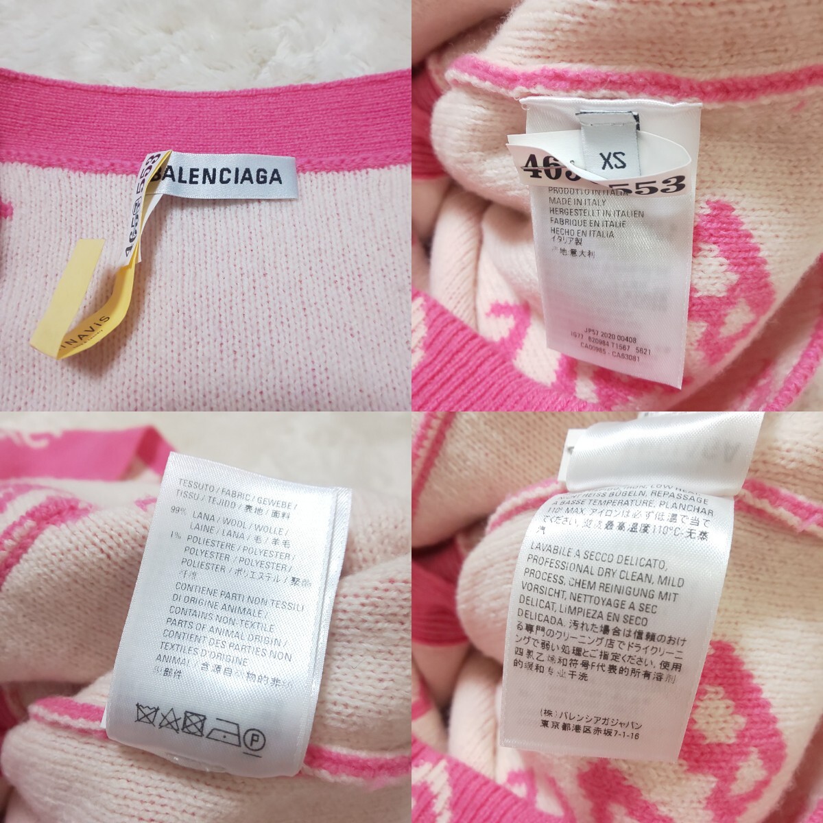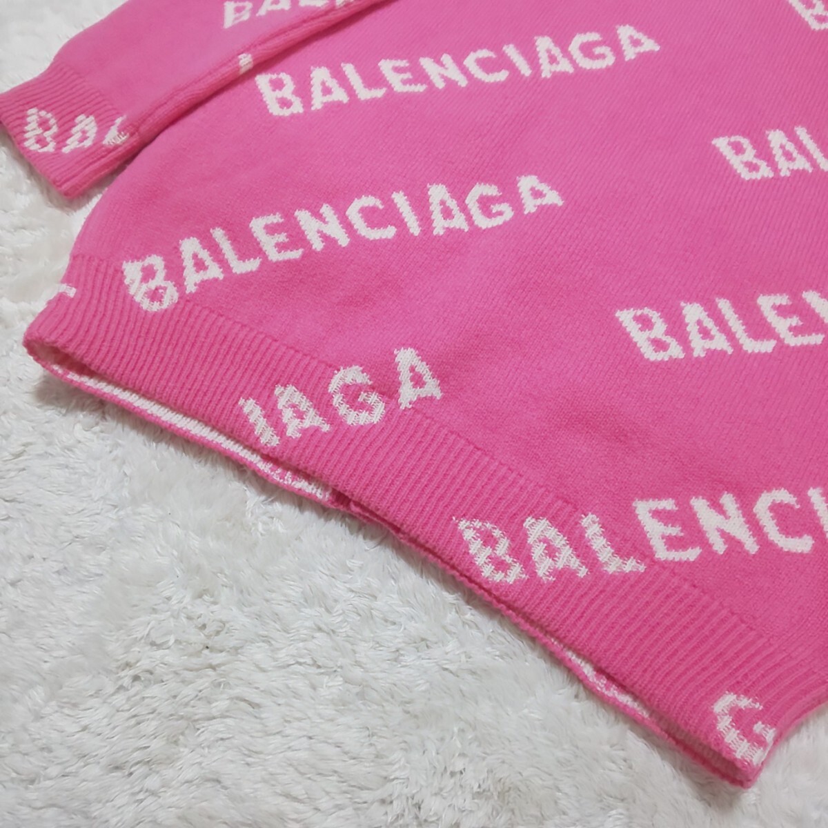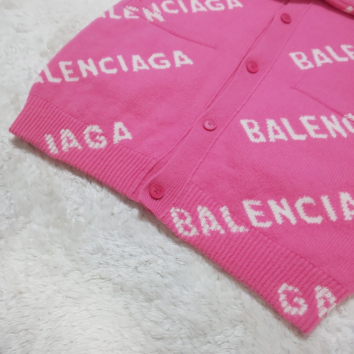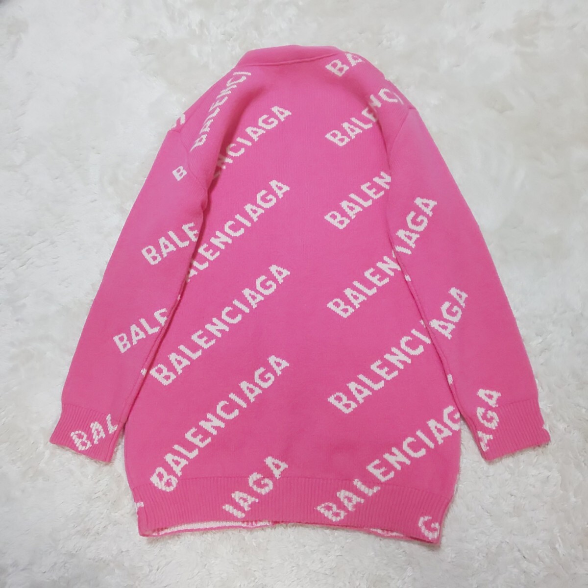 【極美品/完売】BALENCIAGA バレンシアガ ロゴ総柄 Vネックロングカーディガン ポップピンク