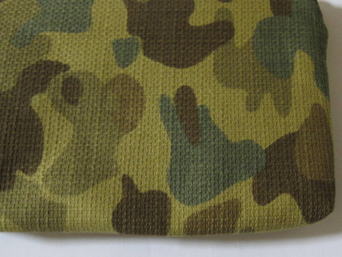柄は、暗めベージュ地に、こげ茶・白オリーブ・白茶・白暗めワサビ色などで迷彩柄
