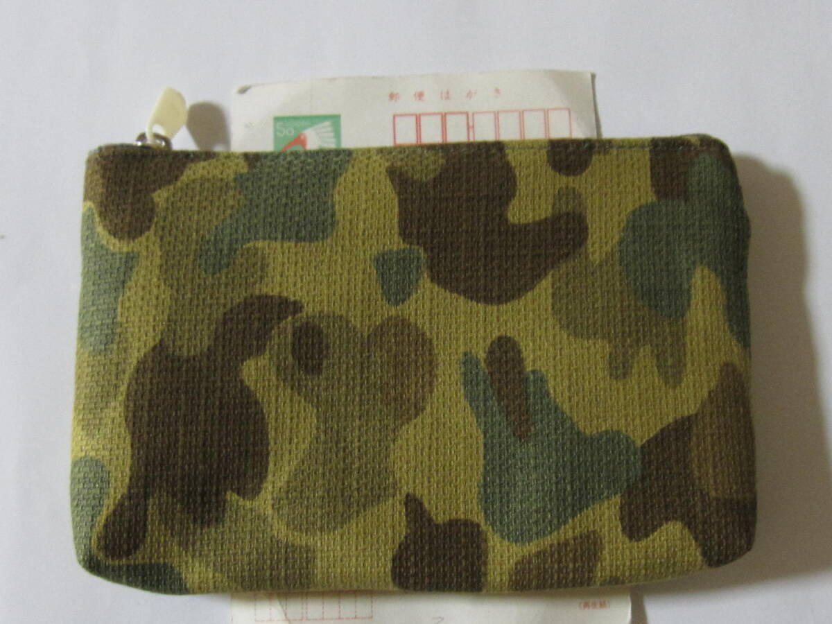 手作り 大 ポーチ 迷彩 カモフラ 模様 格安 ミリタリー柄 ハンドメイド 秋 手芸 財布 小物 充電器 眼鏡 男女 兼用 幅広 プリペラ地 茶×緑