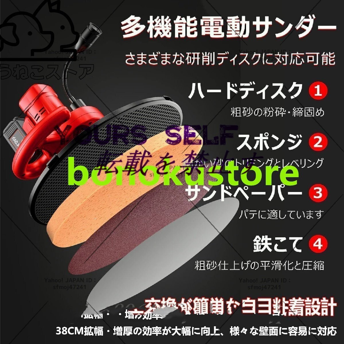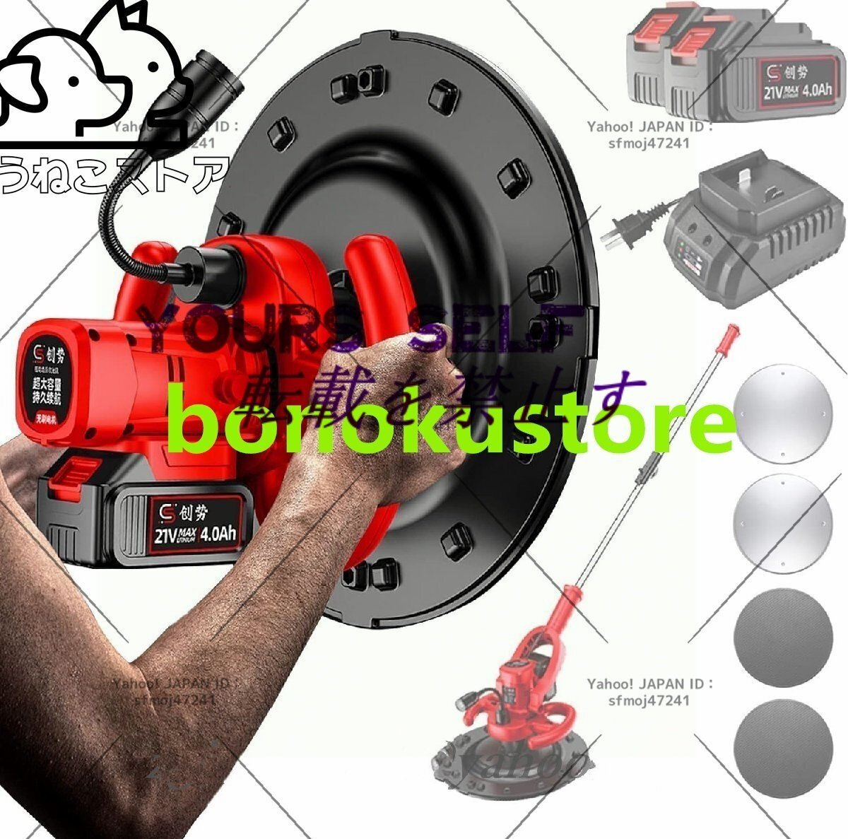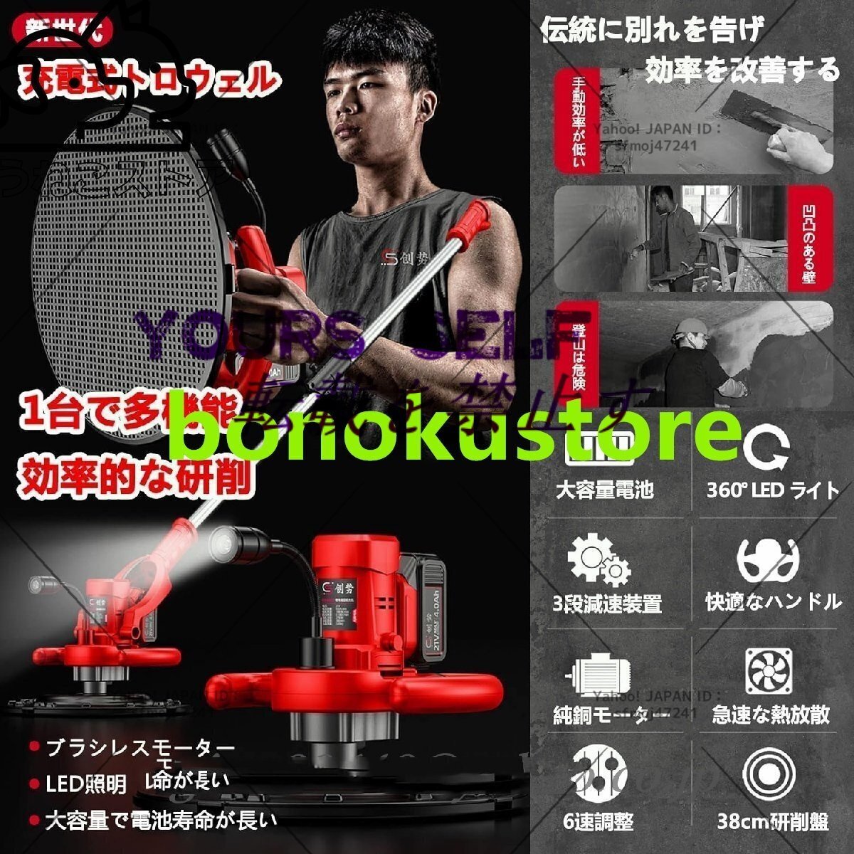 電気サンダー セメント コンクリート研磨機 電動トロウェル コードレス ハンドヘルド 延長ロッド付き 6段変速 大直径38cm 電池2個