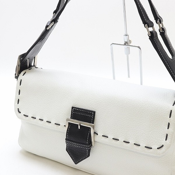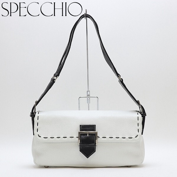 | ◆SPECCHIO スペッチオ レザー ステッチ 肩掛け ショルダー バッグ 白 ホワイト×ブラック | |
