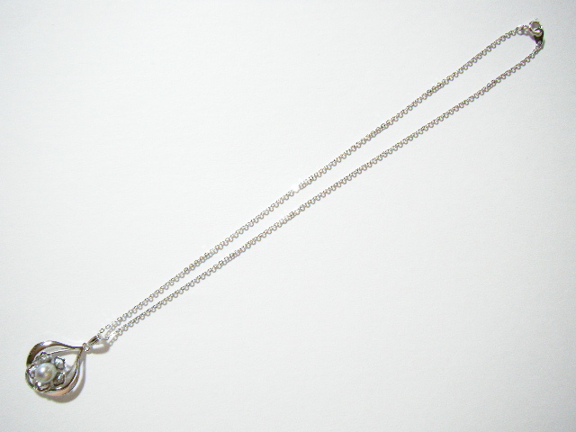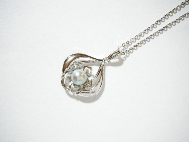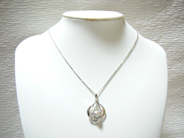 ★パール 6.7mm ペンダント ネックレス シルバーカラー【AN18】