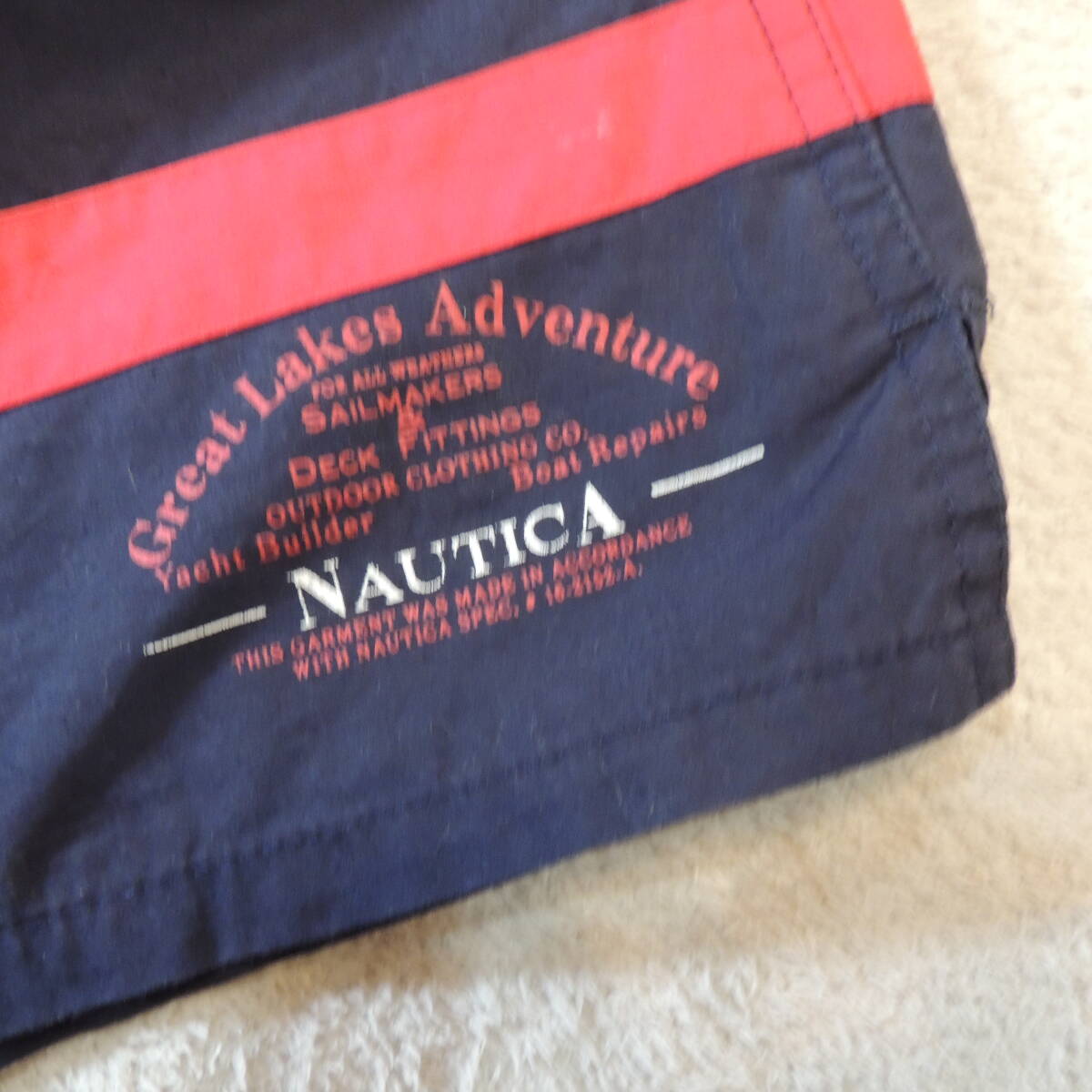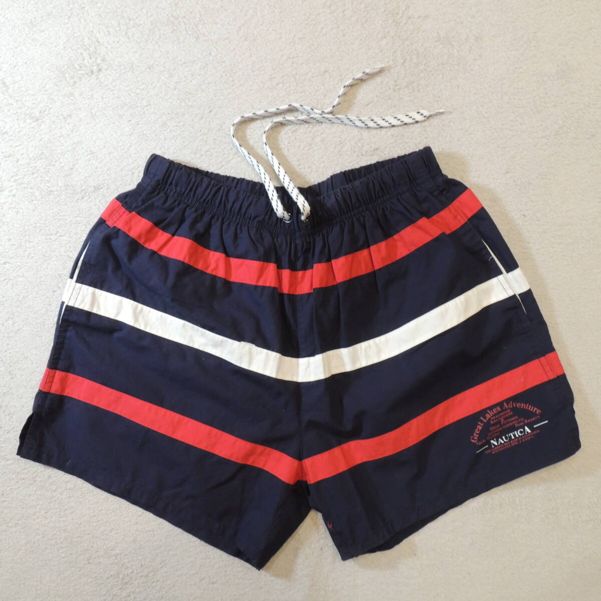 NAUTICA ノーティカ ロゴ ボーダー スイムパンツ ショートパンツ トリコロールカラー 紺赤白 JPメンズL