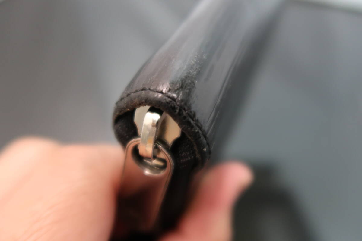 <外側> | エピレザーに擦れがあります。レザーに艶出しが塗られております。光沢がある感じに見えます。 ファスナーを私が交換しております。引手は純正です。 |