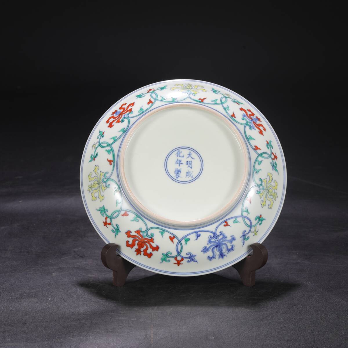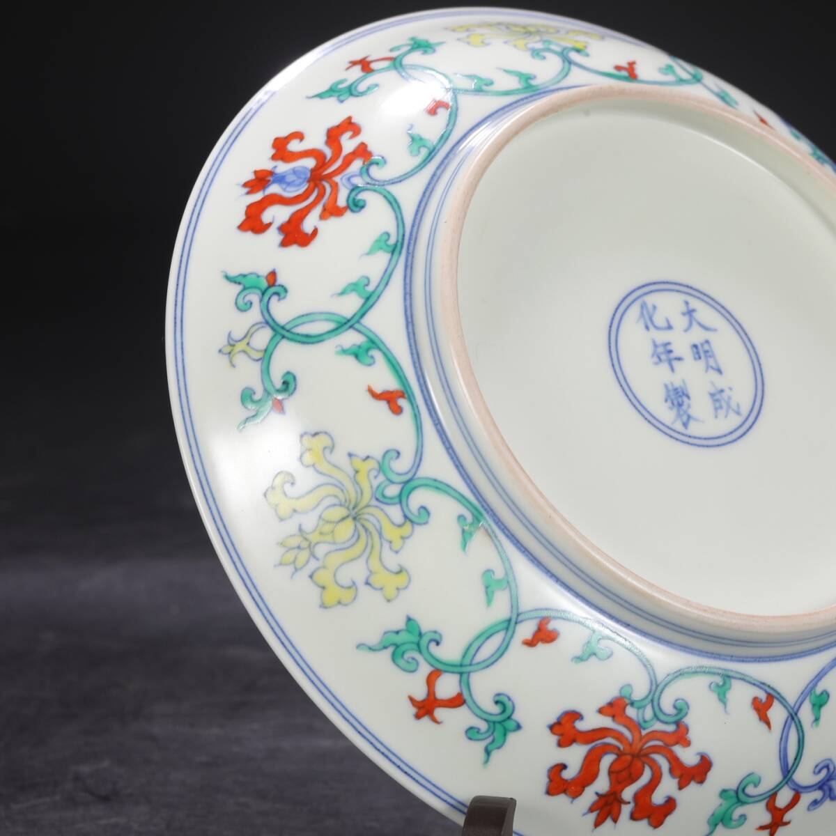 明代 明代 成化斗彩花卉大盤  陶磁器 中国美術 古美術 共箱 RG1157