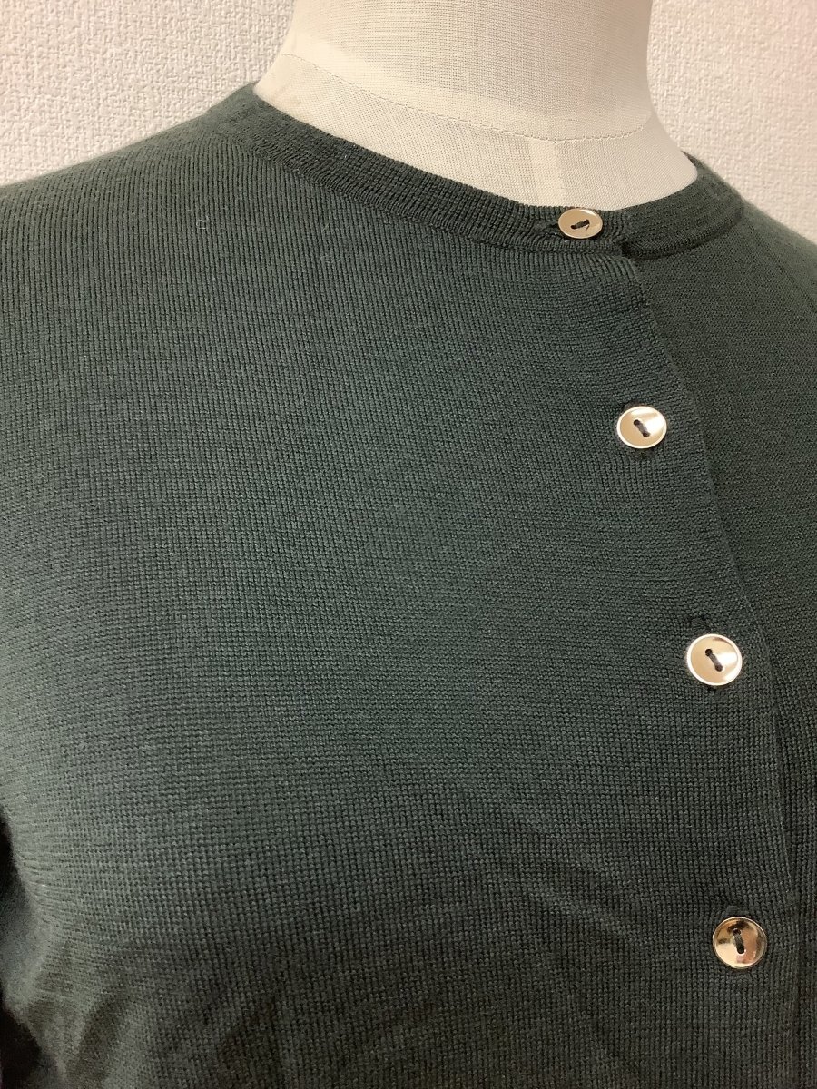インディヴィ (INDIVI) 深緑色ニットカーディガン 【表示サイズ】 38 【平置き実寸】 脇下身幅 42cmほど 着丈 53cmほど 肩幅 34cmほど そで丈 58cmほど 【季節感】春秋向け 【状態その他】 目立った傷や汚れなし ・ポケットはありません ・ストレッチ性のある生地です ・肩パット無し 当店管理番号:10^140727 |