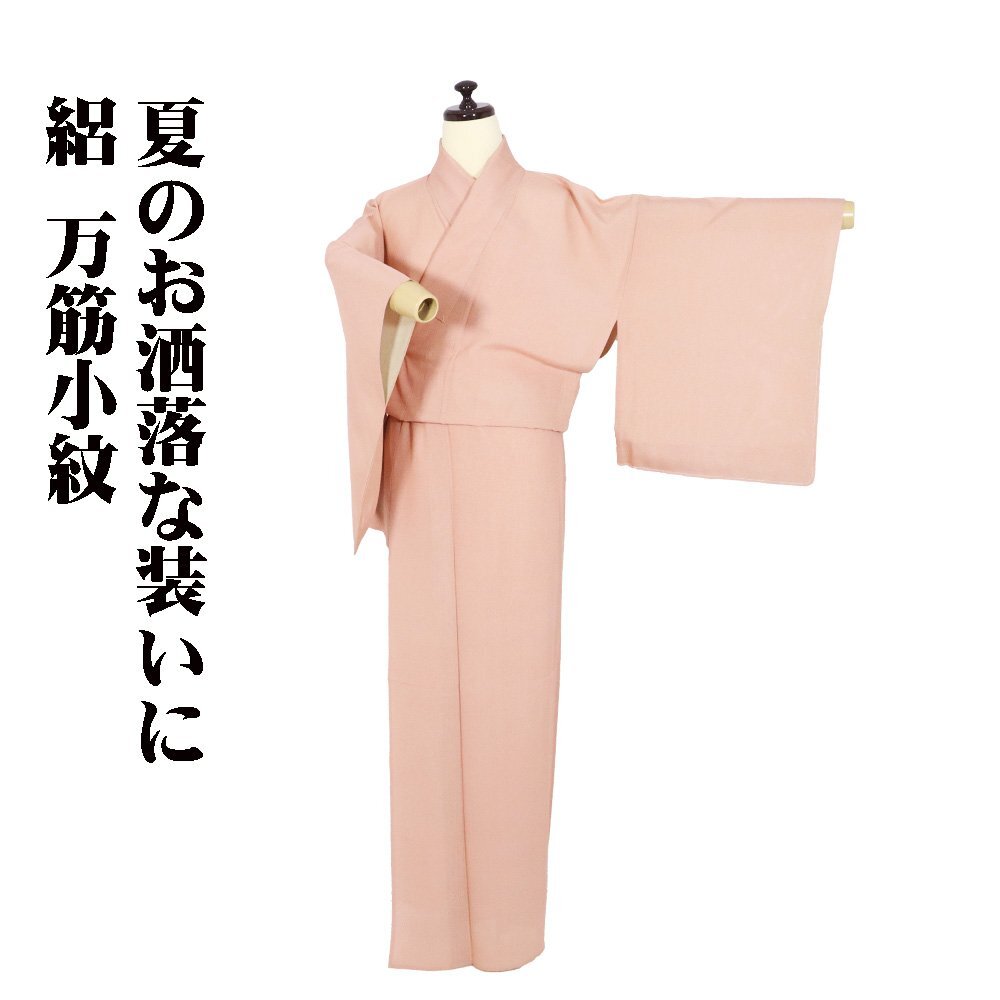 絽 江戸小紋 万筋小紋 丹後縮緬地 両面染 ピンク(薄い遠州茶色) 上品な着物です。 (写真では上手く色が出ない場合があります。ご了承下さい) |