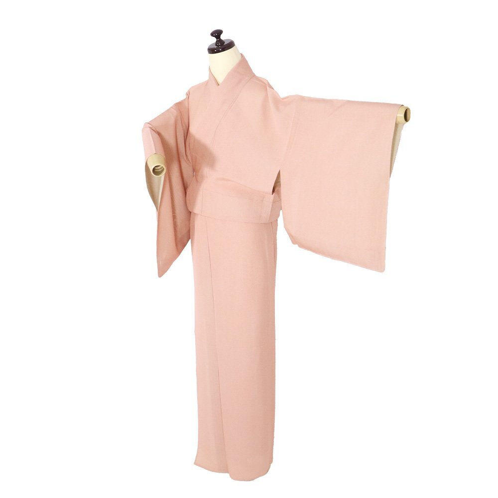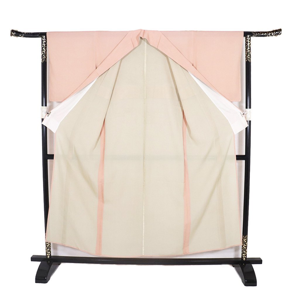 | 絽 江戸小紋 万筋小紋 丹後縮緬地 両面染 ピンク(薄い遠州茶色) 159 広襟 仕付け付き |