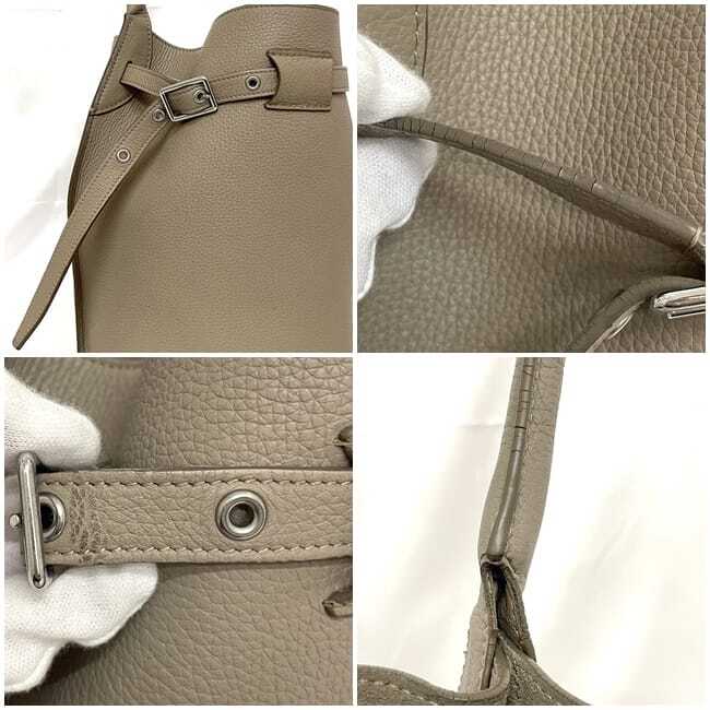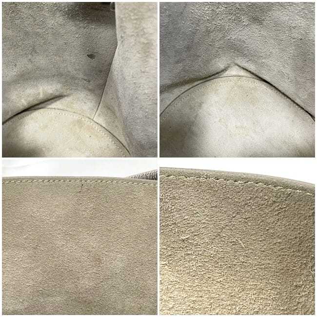 詳細説明 | ハンドルと表面下部に擦れ、コバにひび割れ、ポーチ内本体内側に汚れ、金具に小傷等、使用感がございますがまだまだお使いいただけるお品物です。 |