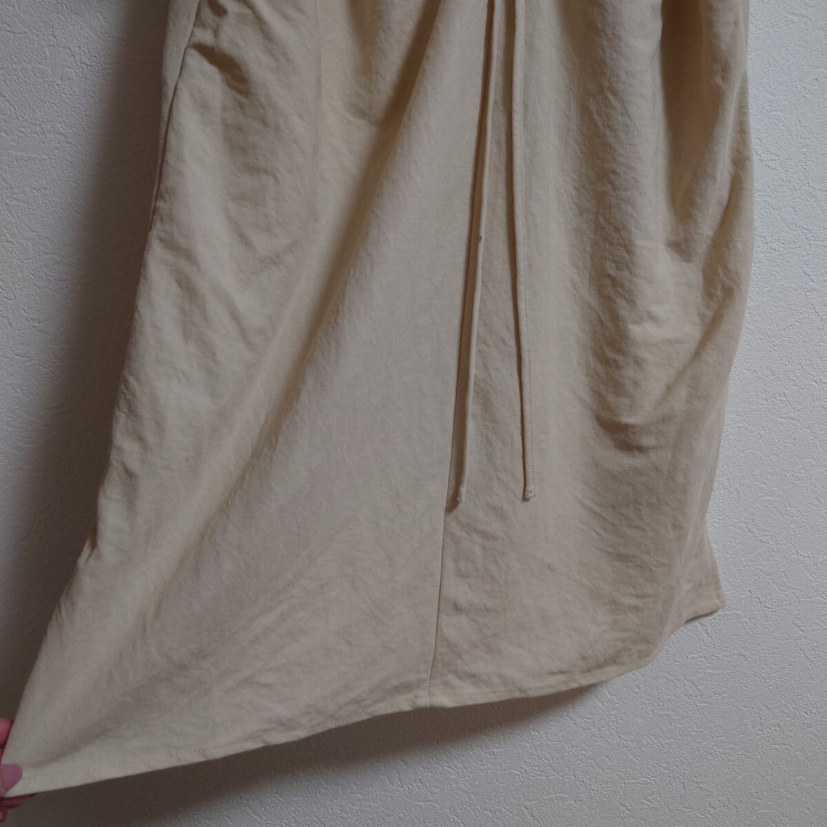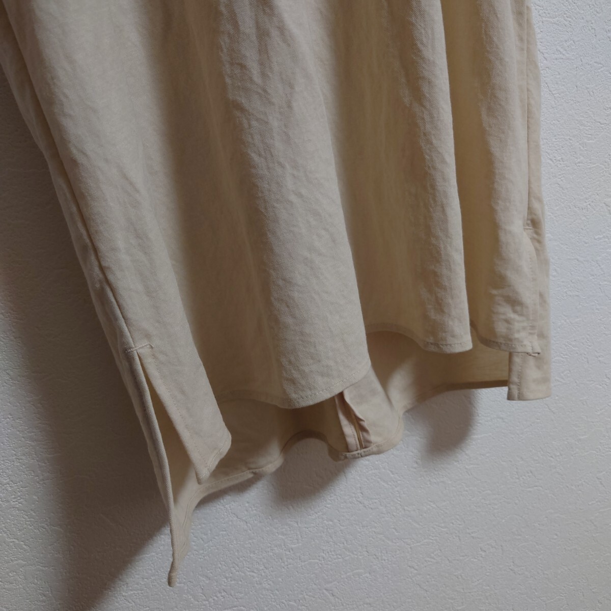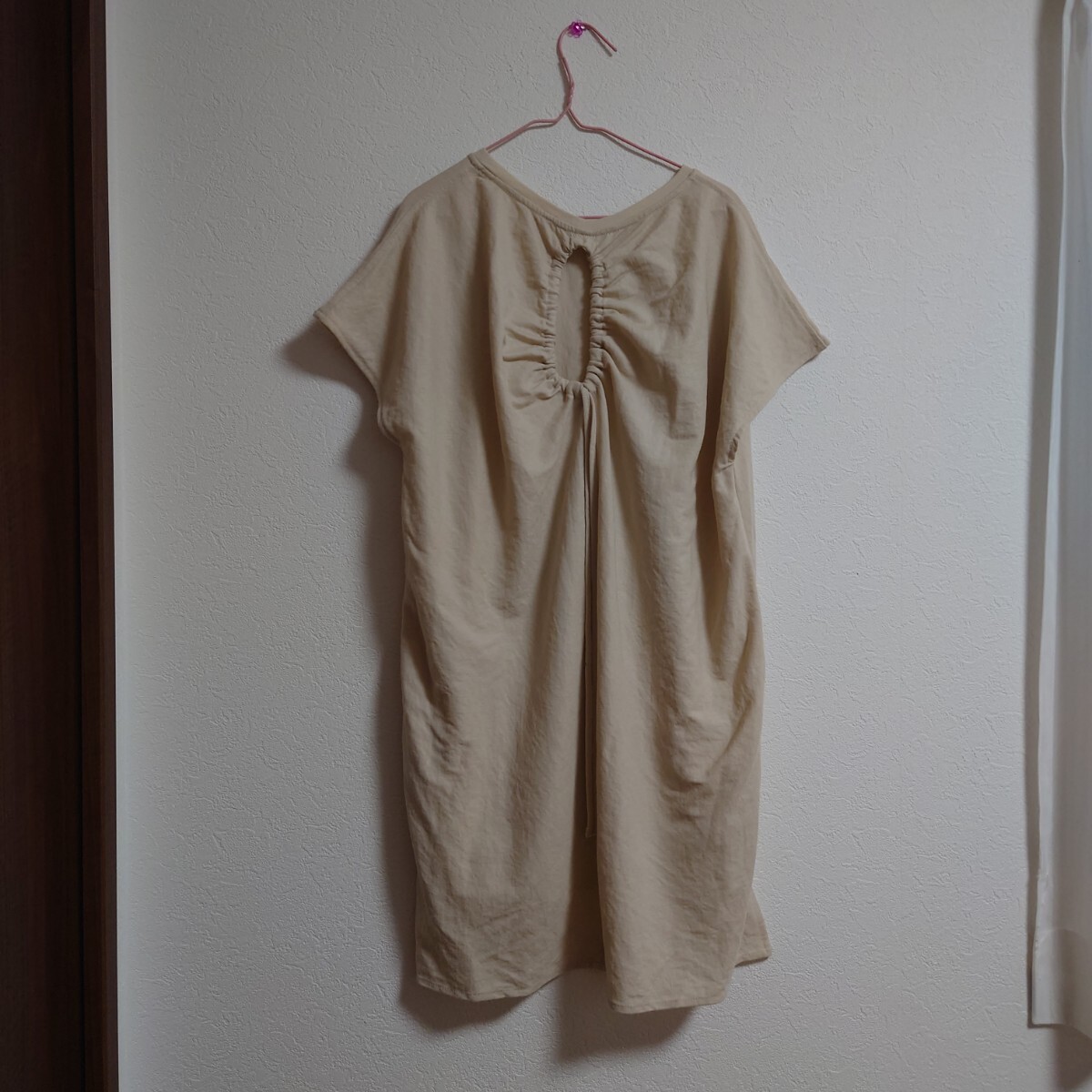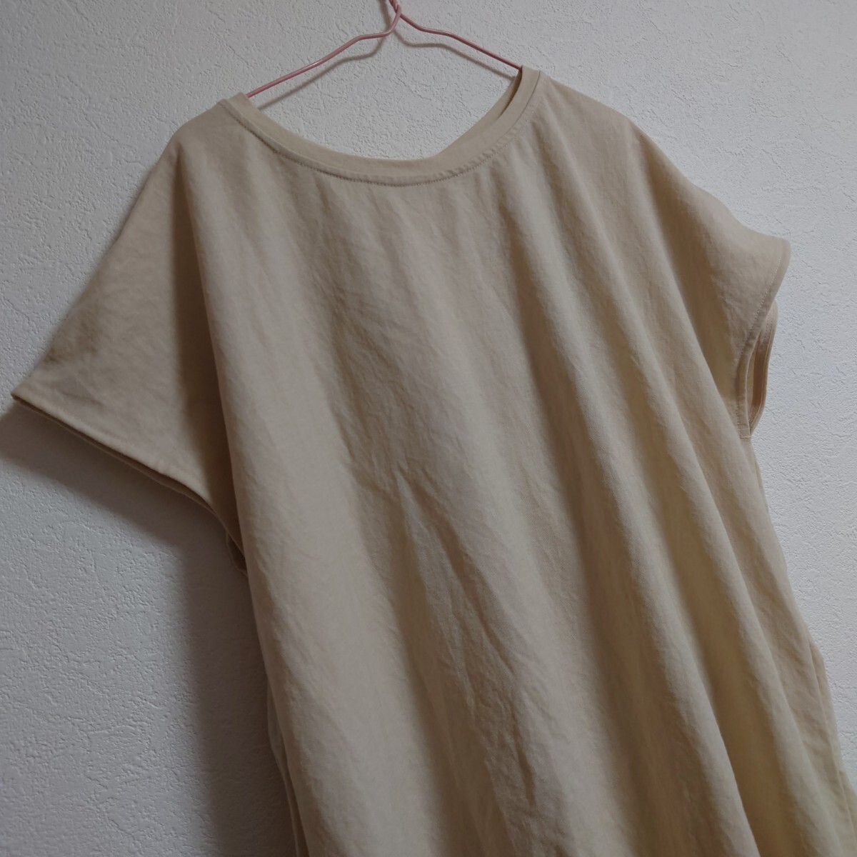 ベージュのフリーサイズでサイドスリットデザインの半袖チュニック。