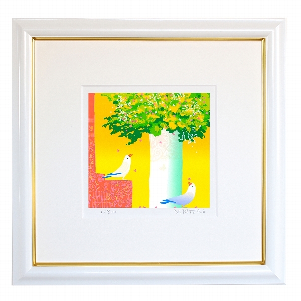 シルクスクリーン版画 吉岡浩太郎 30角 300X300mm シートのみ 「小鳥と花」